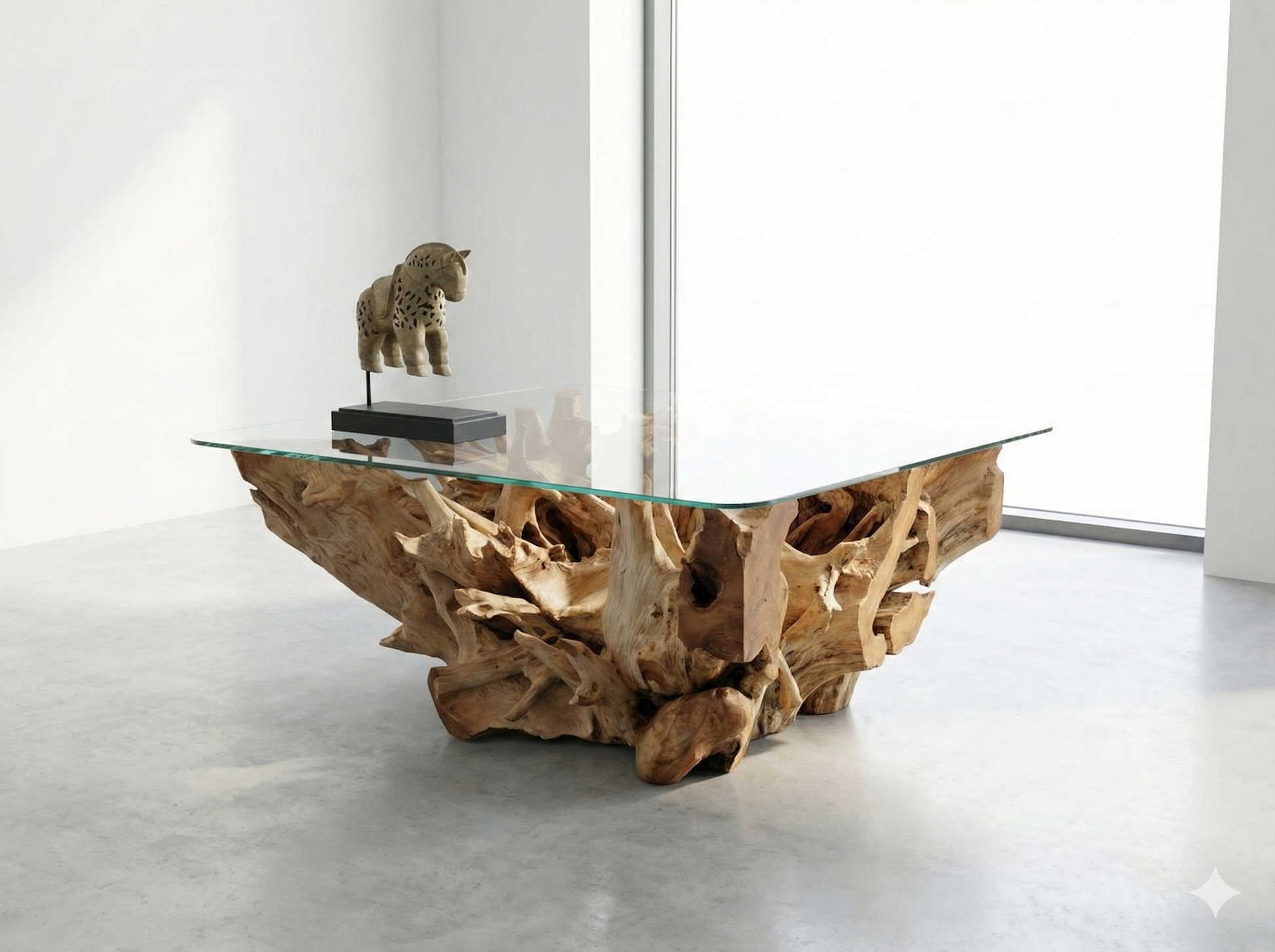 Mesa de centro elaborada con raíz de teca natural, cada pieza es única y original. Fabricada artesanalmente a medida, esta mesa combina la belleza orgánica de la madera de teca con un diseño funcional. La estructura irregular de la raíz aporta carácter y exclusividad a cualquier espacio, convirtiéndola en un elemento distintivo de decoración. Buscamos en origen la que mejor se adapte a tus necesidades.