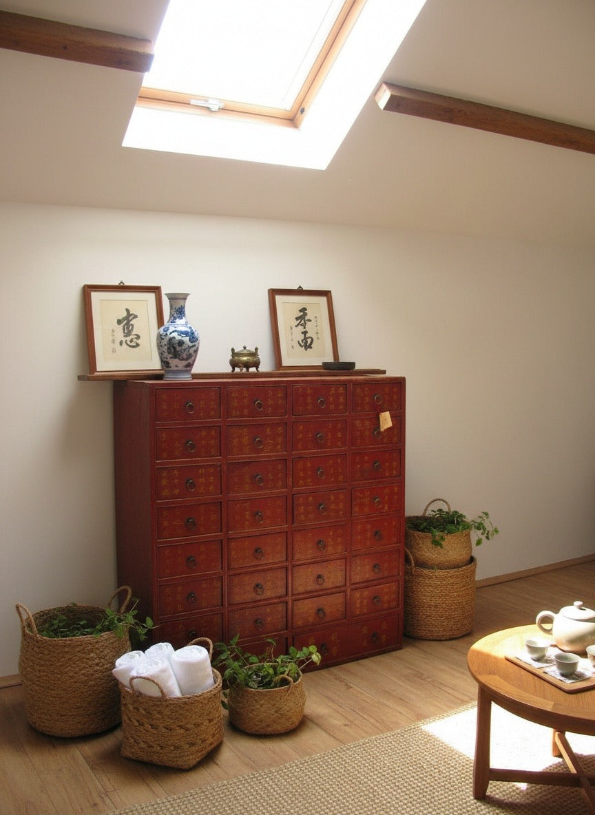 Aparador asiático a medida , que fusiona la estética tradicional china con funcionalidad inspirada en los históricos muebles de farmacia orientales. Incorpora caracteres chinos que añaden significado cultural y autenticidad visual. Su diseño permite organizar espacios con la precisión característica de la medicina tradicional china, ideal para colecciones, remedios naturales o artículos decorativos. Fabricado con materiales de calidad superior, combina la practicidad de almacenamiento compartimentado con la elegancia de la caligrafía oriental. Cada pieza es única, transformando el mueble en una declaración que honra la herencia asiática mientras sirve propósitos contemporáneos con distinción y propósito.