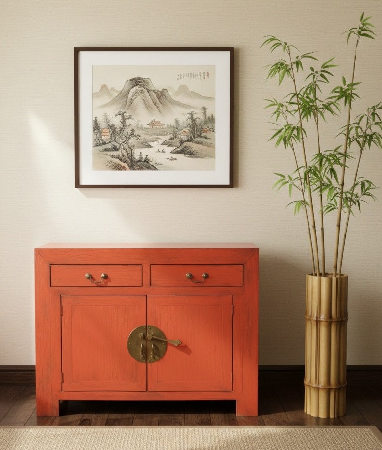 Aparador colonial-asiático a medida fabricado artesanalmente en TECA