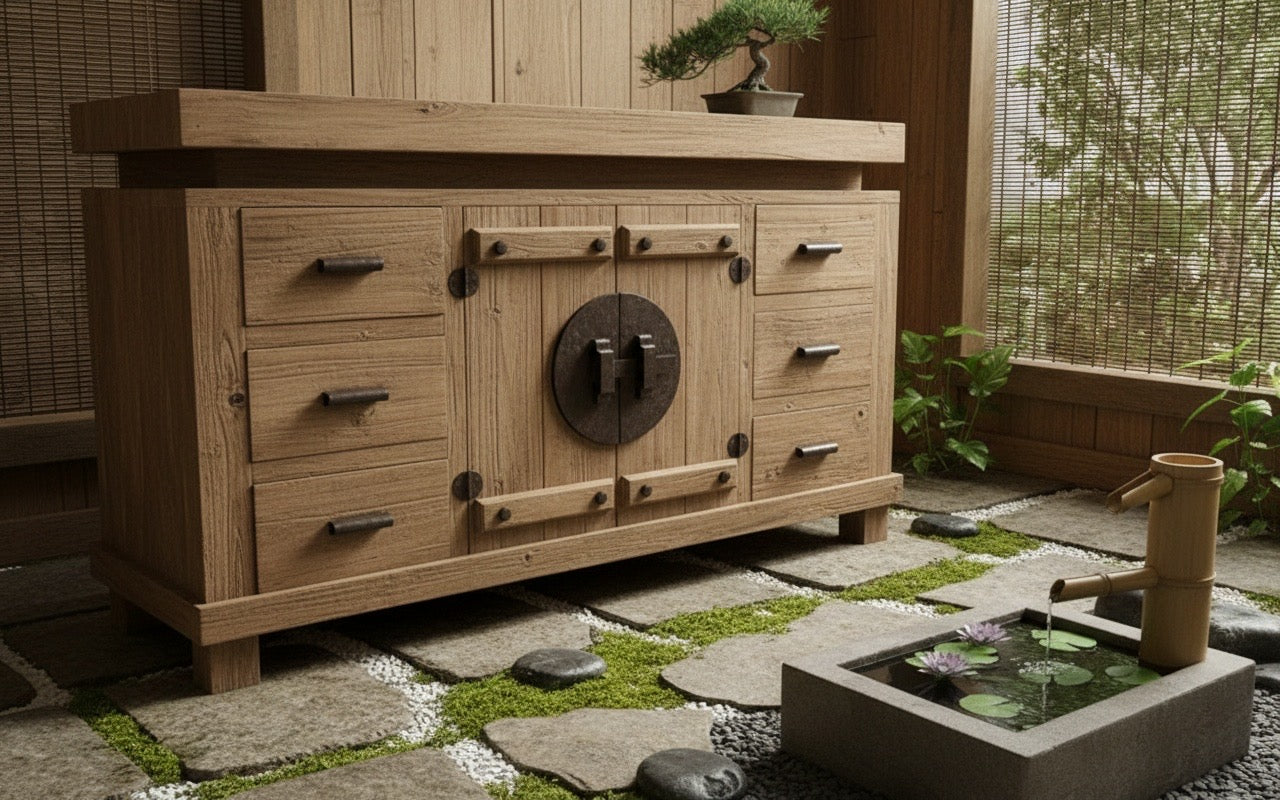 Aparador colonial-asiático fabricado artesanalmente en TECA