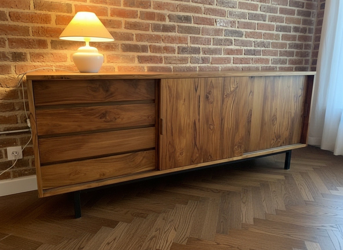 Aparador a medida de estilo colonial-asiático - AM-14172. Aparador de estilo colonial-asiático fabricado artesanalmente en madera de teca. Disponible en el color y medida que necesites.