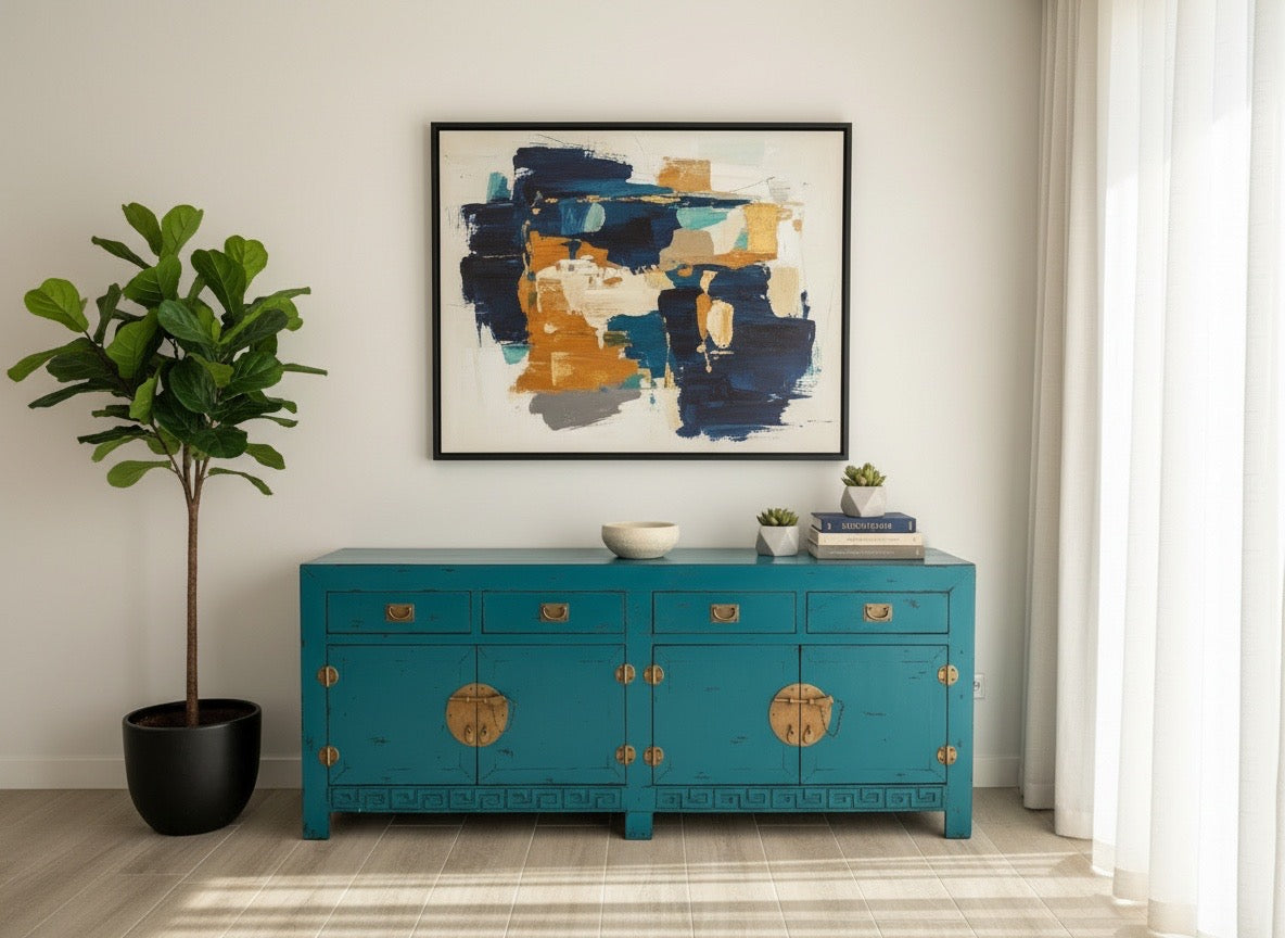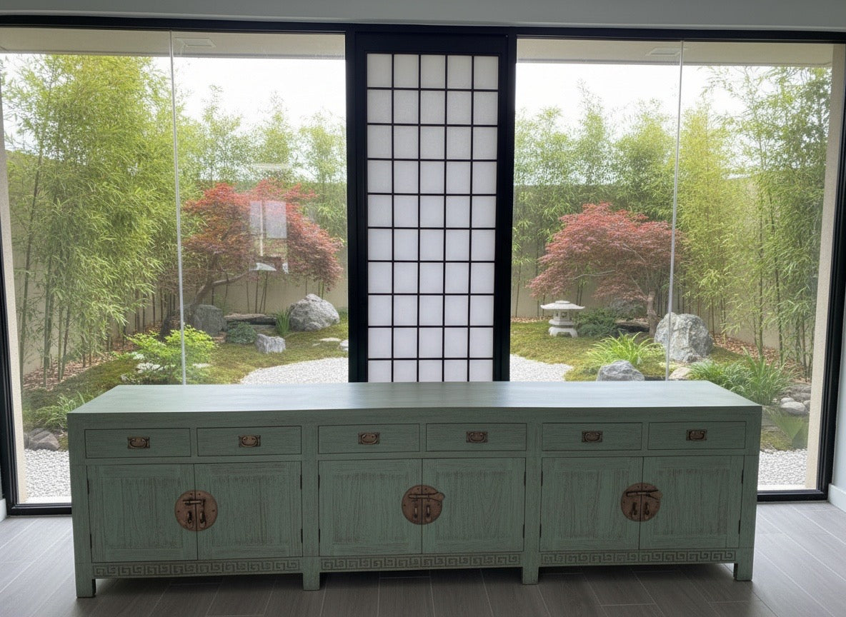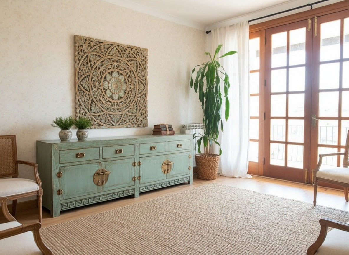Aparador colonial-asiático fabricado artesanalmente en madera de TECA