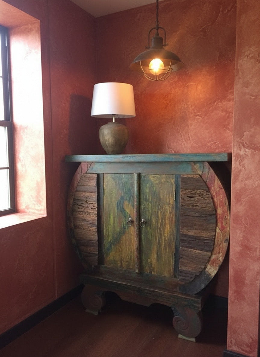 Aparador colonial-asiático a medida - AM-14124. Un aparador de estilo colonial-asiático fabricado artesanalmente en madera de TECA, que no pasará desapercibido en tu hogar. Además, lo fabricamos todo a medida, por lo que puedes pedírnoslo en la medida que necesites o el color que más te guste.