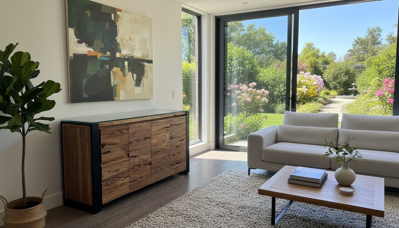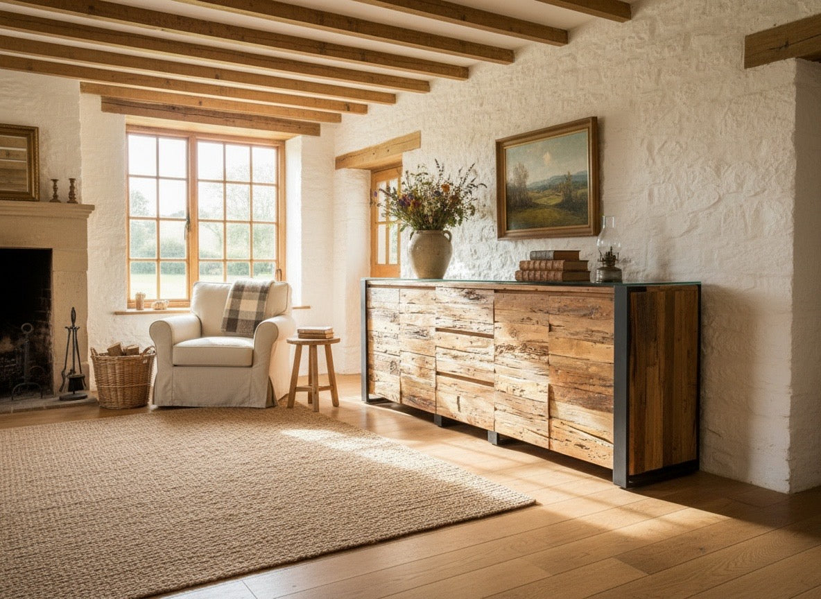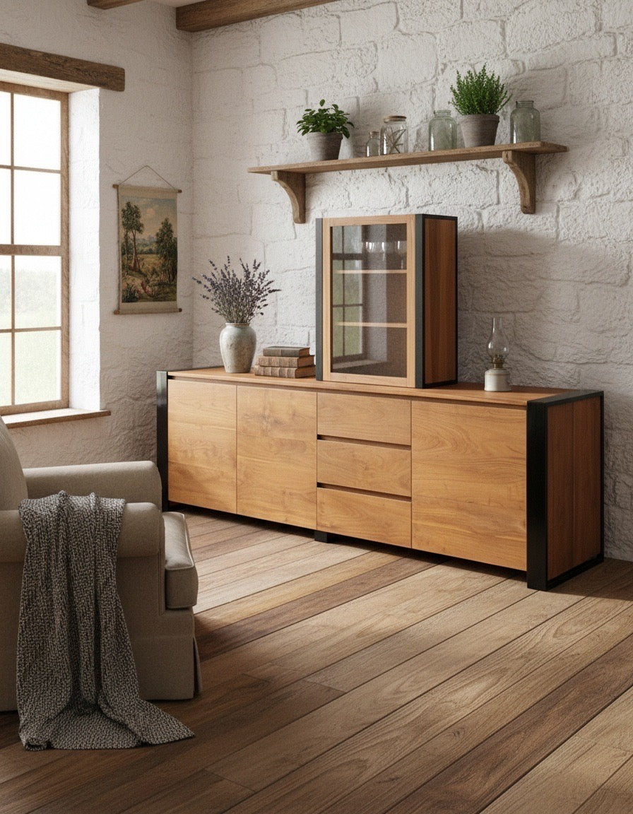 Aparador con patas de metal y madera de teca reciclada AM202109281346