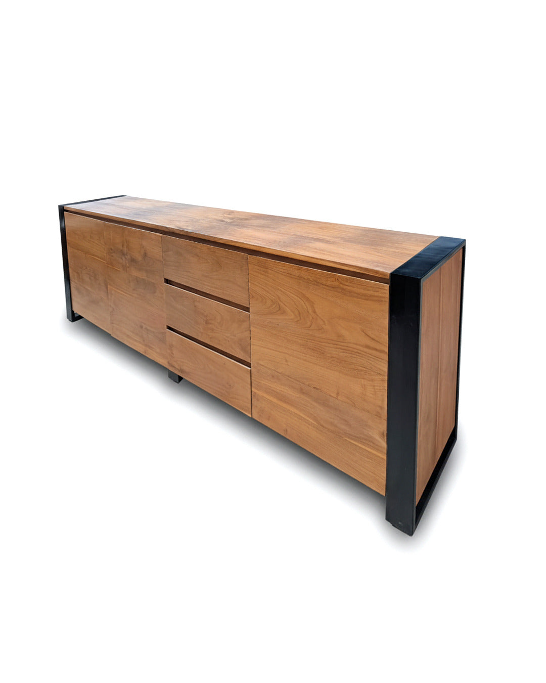 Aparador con patas de metal y madera de teca reciclada o liso AM202109281346. Aparador de estilo colonial y estilo asiático fabricado artesanalmente en madera de teca reciclada y patas de metal. Disponible en cualquier color y medida. Posibilidad de modificar la configuración de cajones y puertas.