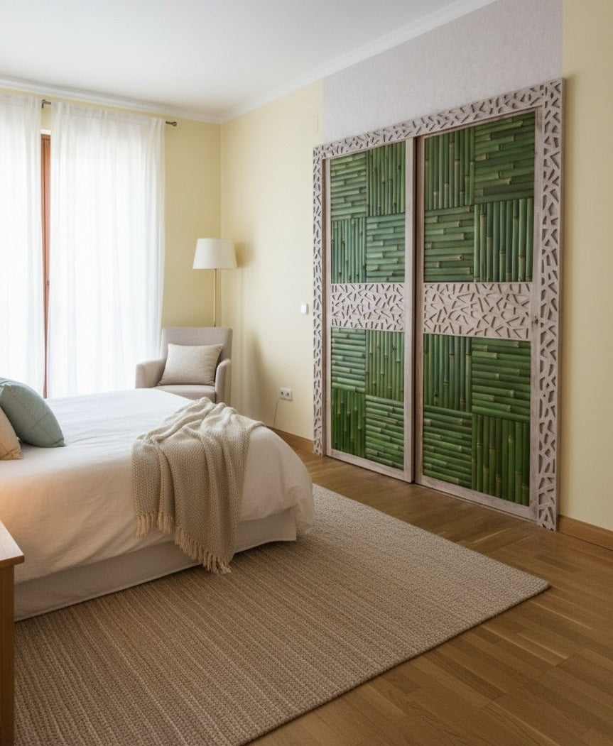 Nuestro Armario Colonial-Oriental a Medida en Madera de Teca Tallada es una creación que fusiona la nobleza de la teca con detalles en bambú, generando espacios de originalidad incomparable. Cada talla es única, reflejando la maestría artesanal que transforma materiales naturales en expresiones de arte funcional. El bambú aporta ligereza y autenticidad oriental, mientras que la teca garantiza durabilidad excepcional. Personalizable en medidas y acabados, este armario crea ambientes verdaderamente singulares que trascienden lo convencional. Una pieza que celebra la naturaleza y la tradición, convirtiéndose en el corazón decorativo de cualquier hogar con carácter y distinción.