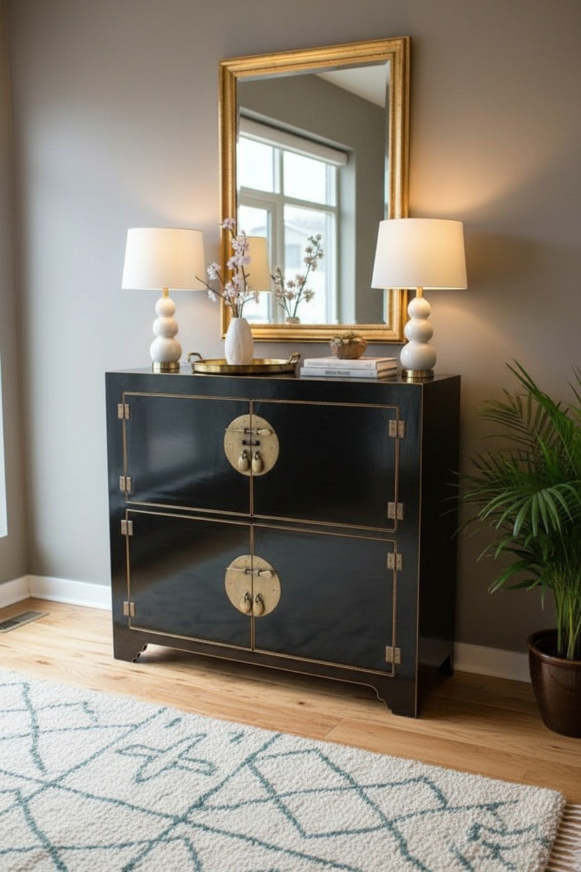 Armarios de boda chino a medida equipados con bisagras tradicionales de metal que refuerzan la autenticidad oriental. Este mueble práctico permite personalizar completamente la configuración de puertas y cajones según tus requerimientos específicos de almacenamiento. La amplia gama de colores disponibles facilita la integración armónica en cualquier contexto decorativo. Las bisagras metálicas tradicionales funcionan como elementos decorativos que evocan la maestría artesanal china. Fabricado con materiales nobles, combina funcionalidad generosa con presencia visual distinguida. Cada pieza ofrece soluciones de almacenamiento inteligentes sin comprometer la elegancia ceremonial.