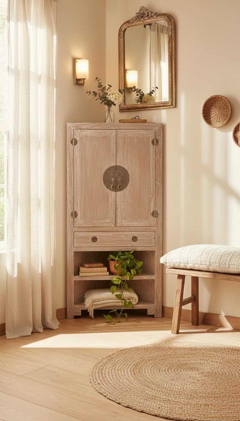 Armario de rincón asiático colonial que maximiza el aprovechamiento inteligente de espacios. Este mueble práctico ha sido diseñado específicamente para adaptarse a rincones, transformando áreas difíciles en soluciones de almacenamiento funcionales y elegantes. Su configuración angular permite acceso óptimo mientras mantiene la estética refinada del diseño oriental. Fabricado con materiales nobles, combina solidez estructural con presencia visual distinguida que enriquece cualquier ambiente. La distribución interior inteligente ofrece capacidad generosa sin comprometer la practicidad. Descubre cómo este armario convierte espacios desaprovechados en puntos focales de elegancia, proporcionando almacenamiento duradero que refleja tu buen gusto y maximiza cada rincón de tu hogar con autenticidad asiática.