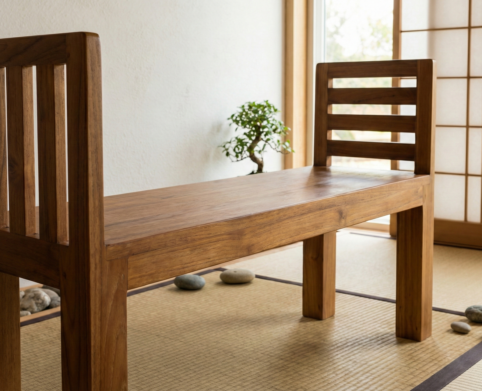 Banco colonial-asiático fabricado artesanalmente en TECA