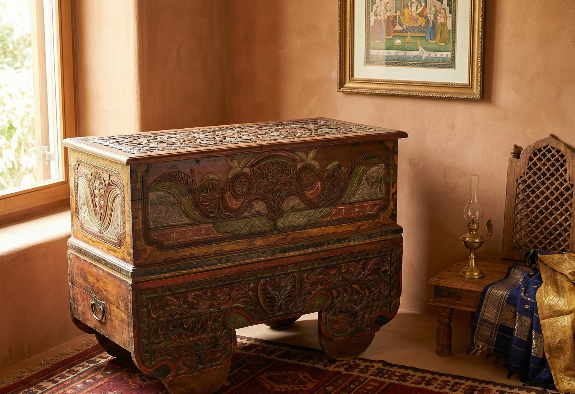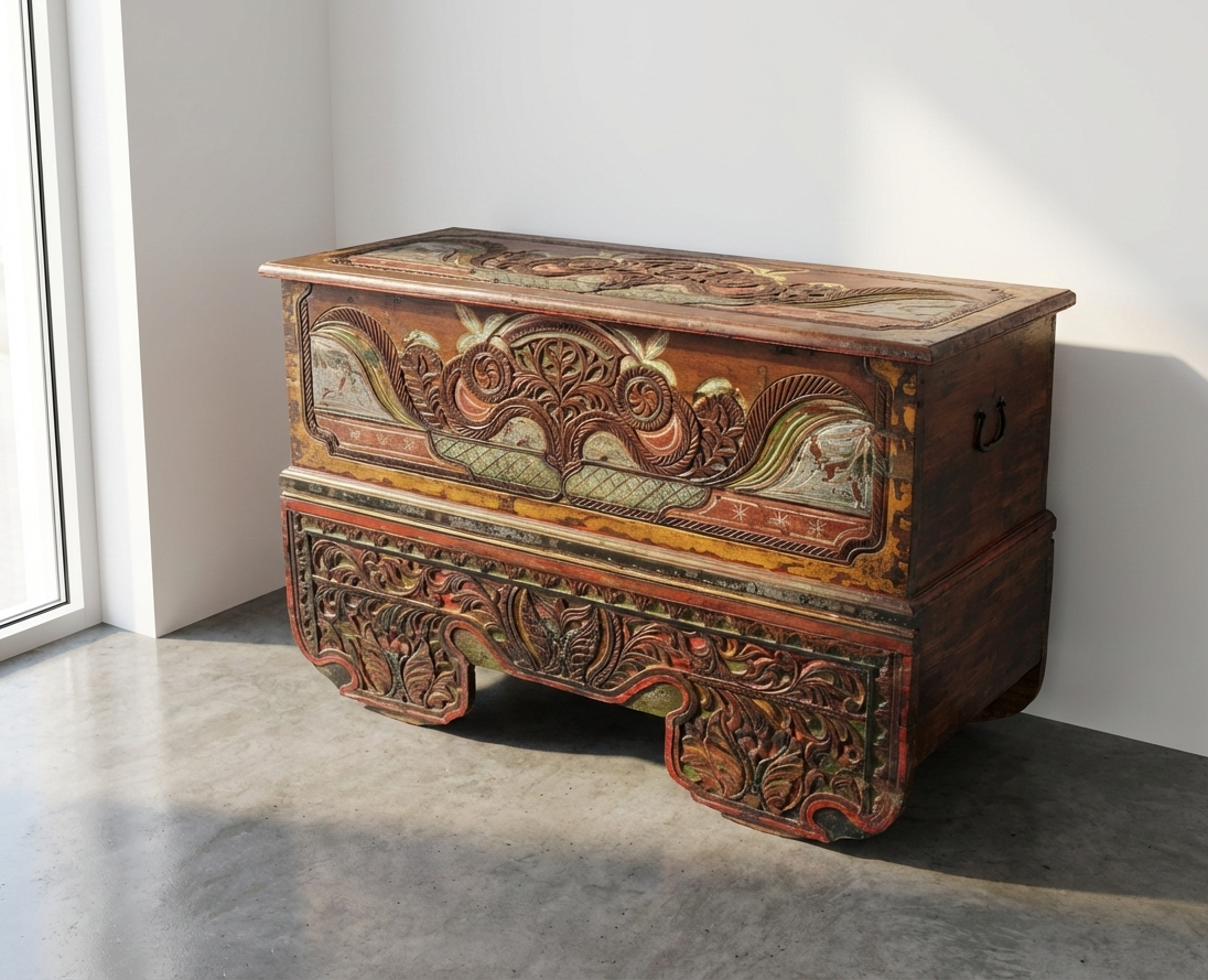 Baul colonial-asiático fabricado artesanalmente en TECA