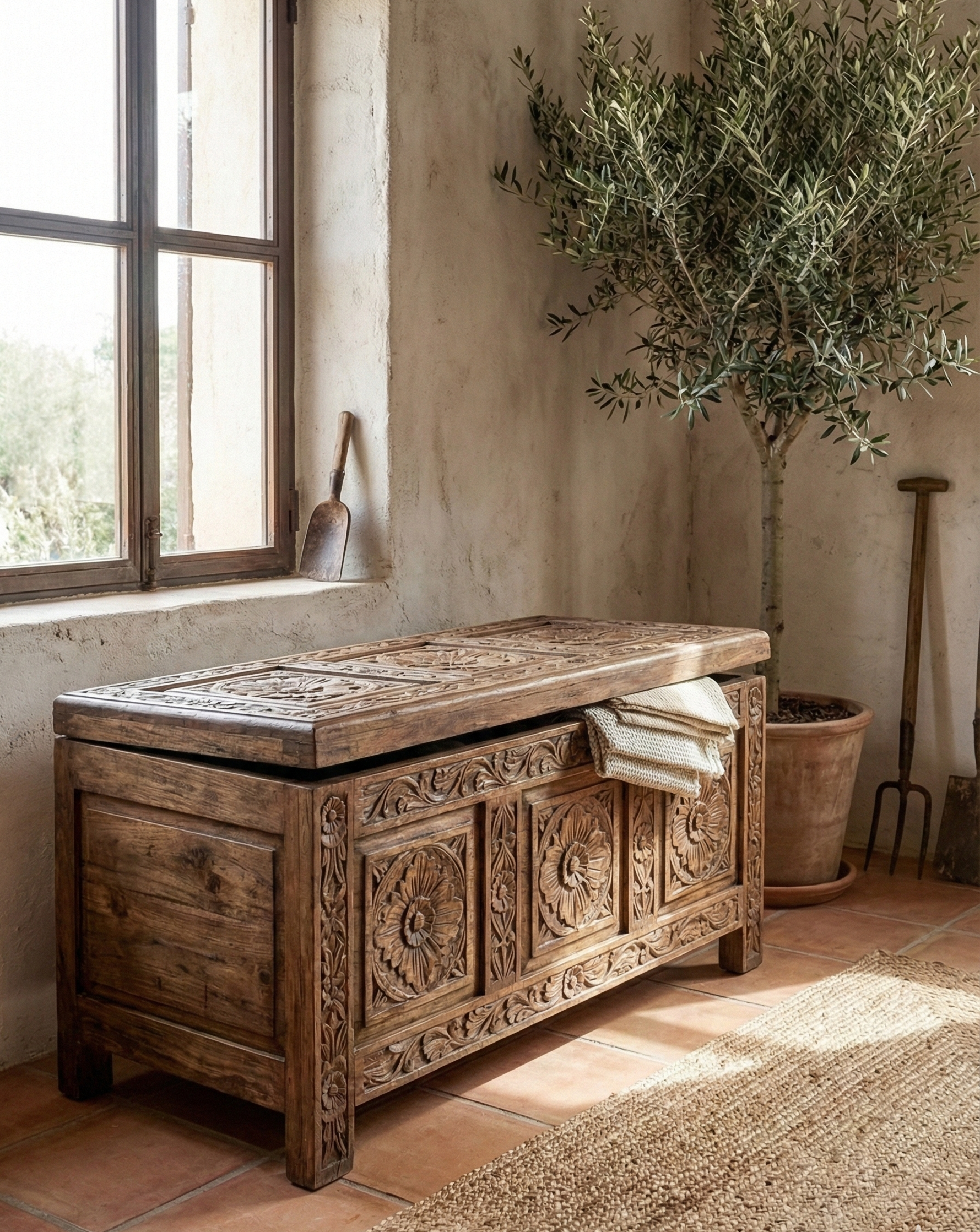 Baul colonial-asiático fabricado artesanalmente en TECA
