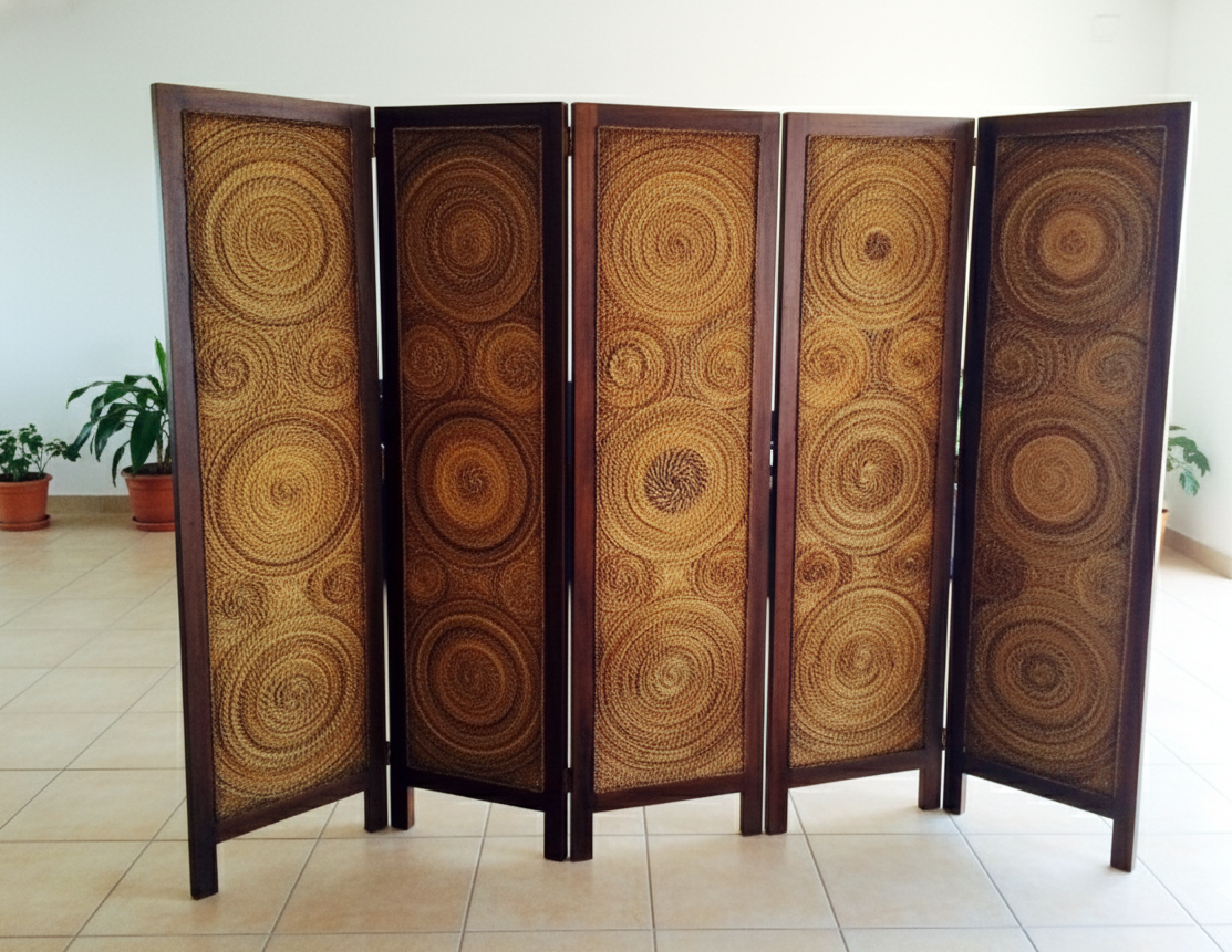 Biombo colonial-asiático fabricado artesanalmente en TECA