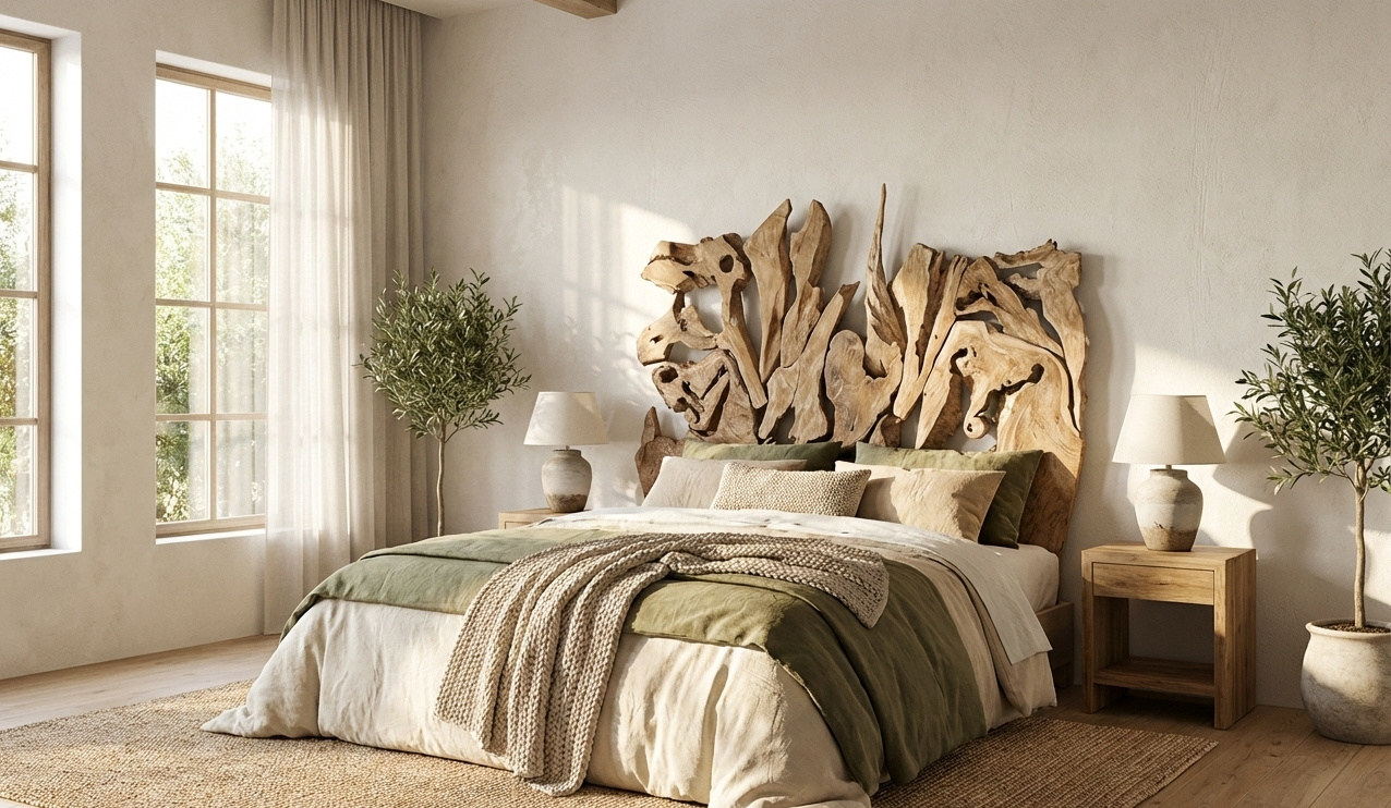 Este cabecero es una pieza única hecha a medida de raíz de teca, que trae consigo una autenticidad y originalidad inigualables. Inspirado en el estilo asiático colonial, este cabecero aportará un toque de elegancia y sofisticación a cualquier dormitorio. Además, su diseño personalizado garantiza un ajuste perfecto para su cama.