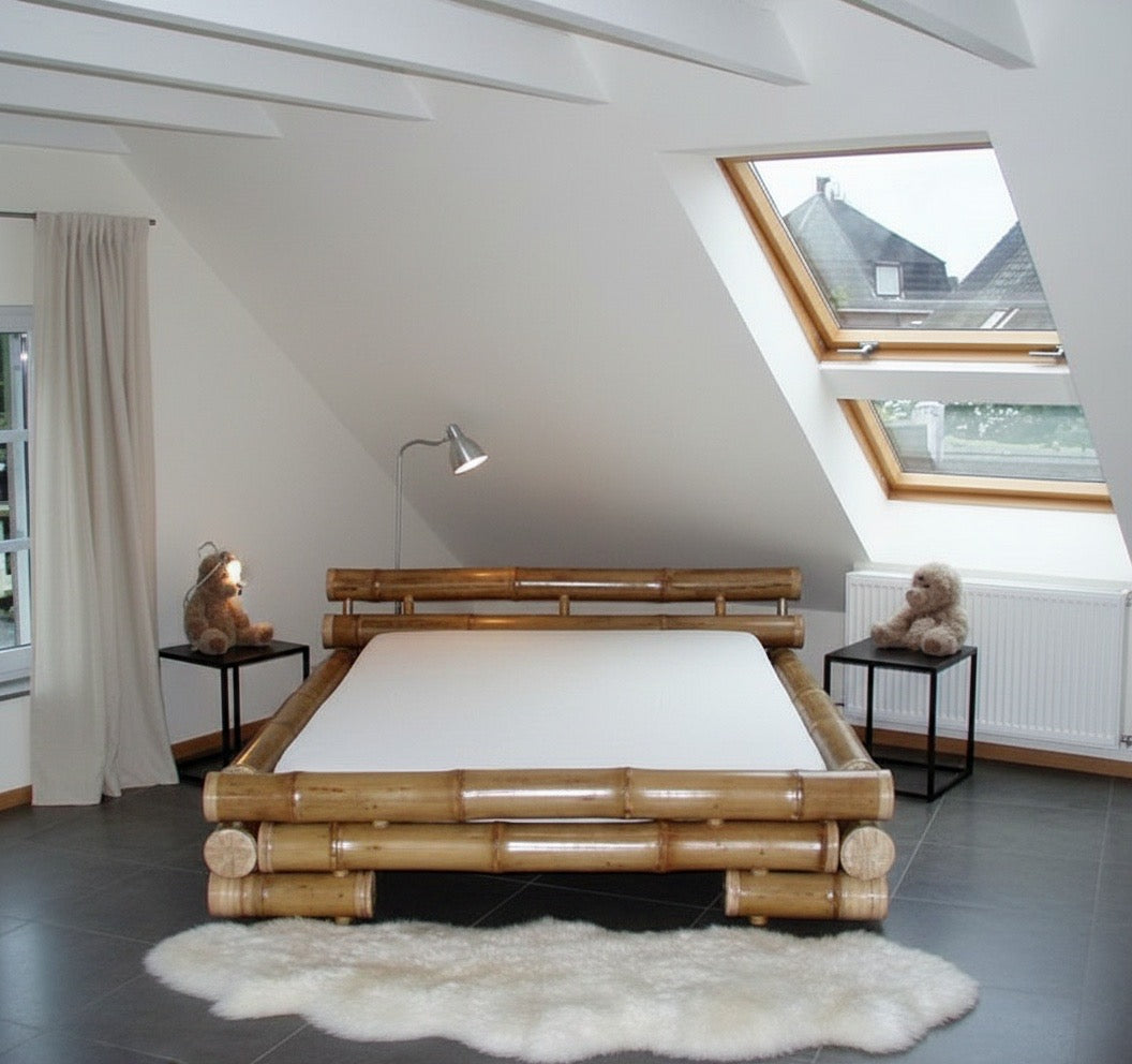 Cama colonial asiática en bambú a medida. El bambú natural ofrece una alternativa ecológica y sostenible sin renunciar a la elegancia oriental clásica. Su estructura ligera pero resistente proporciona comodidad duradera, mientras que su tonalidad cálida crea una atmósfera serena y acogedora. Personalizable según tus necesidades espaciales, se adapta perfectamente a cualquier dormitorio. El bambú envejece , desarrollando una pátina que enriquece su belleza con el tiempo. Esta cama representa un compromiso con la naturaleza y el diseño consciente, transformando tu espacio de descanso en un santuario minimalista donde la sostenibilidad y la sofisticación convergen armoniosamente.