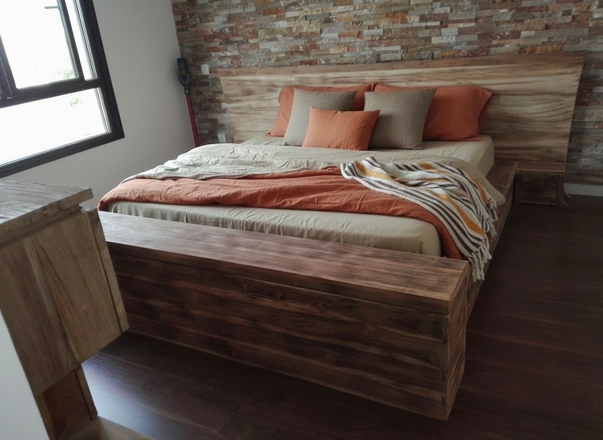 Cama artesanal de estilo colonial-asiático , a medida, elaborada en teca maciza, un material noble que garantiza resistencia y belleza duraderas. Totalmente personalizable en medidas y acabados cromáticos, se adapta a las dimensiones exactas de tu dormitorio y a tu paleta de colores preferida. Cada pieza es única, reflejando la maestría del trabajo manual y la autenticidad del diseño oriental clásico. Invierte en una cama que combina funcionalidad, elegancia atemporal y calidad artesanal, creando un espacio de descanso verdaderamente excepcional.