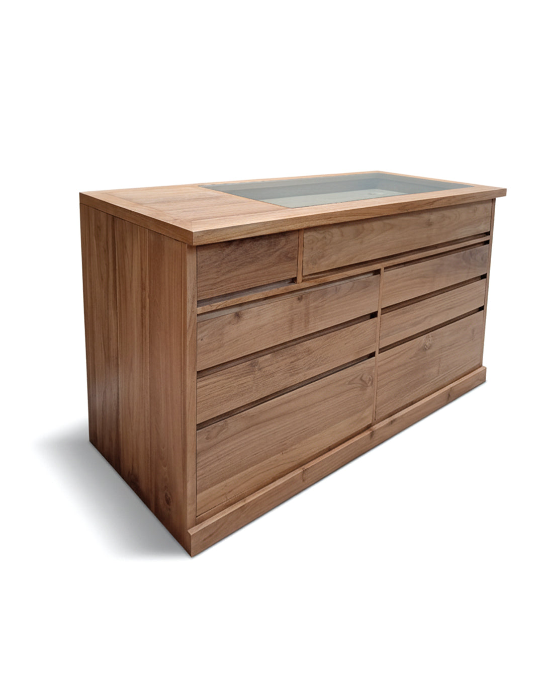 Cómoda colonial de teca , diseñada a medida según tus preferencias de distribución de cajones. Esta pieza combina la elegancia atemporal del estilo colonial con la durabilidad excepcional de la teca, una madera noble resistente a la humedad y al paso del tiempo. Disponible con expositor integrado para exhibir tus objetos decorativos. Personalizable en dimensiones y configuración de cajones para adaptarse perfectamente a tu espacio y necesidades de almacenamiento. Acabado natural que resalta la belleza característica de la madera.