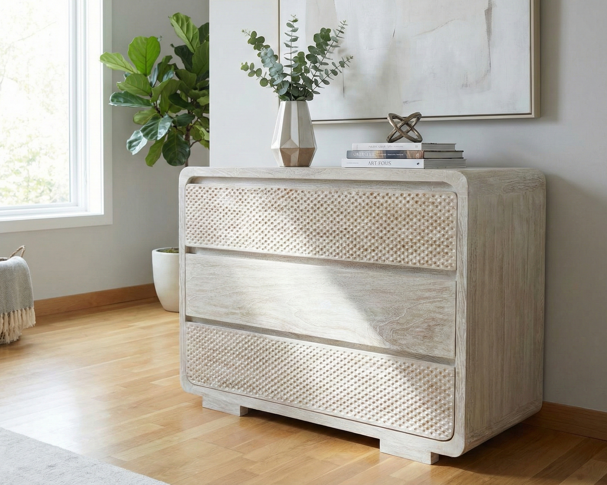 Cómoda en madera de teca a medida AM-20242. Cómoda colonial estilo asiática fabricada artesanalmente en madera de teca con un diseño original. Disponibilidad en otras medidas y colores y con opción de incluir o quitar cajones y puertas.