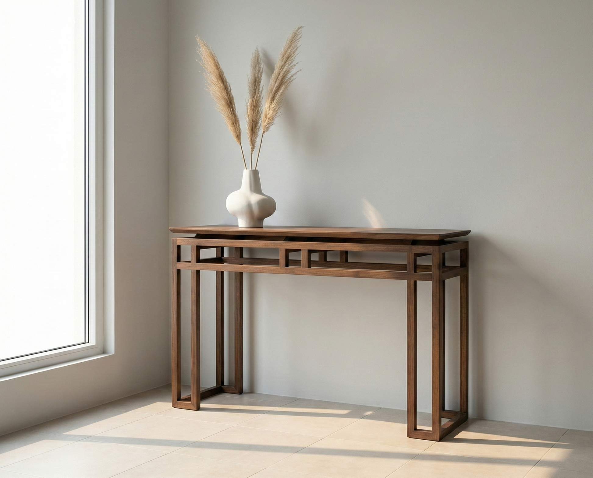 Transforma tu espacio con esta consola colonial asiática, una pieza artesanal confeccionada en teca maciza que evoca la tradición oriental más auténtica. Diseñada completamente a medida, se adapta a tus necesidades específicas en dimensiones y tonalidades. Su construcción robusta garantiza durabilidad excepcional, mientras que su estética refinada aporta sofisticación y calidez a cualquier ambiente. Un mueble versátil que combina funcionalidad con belleza atemporal, perfecto para quienes valoran la calidad y el diseño genuino.