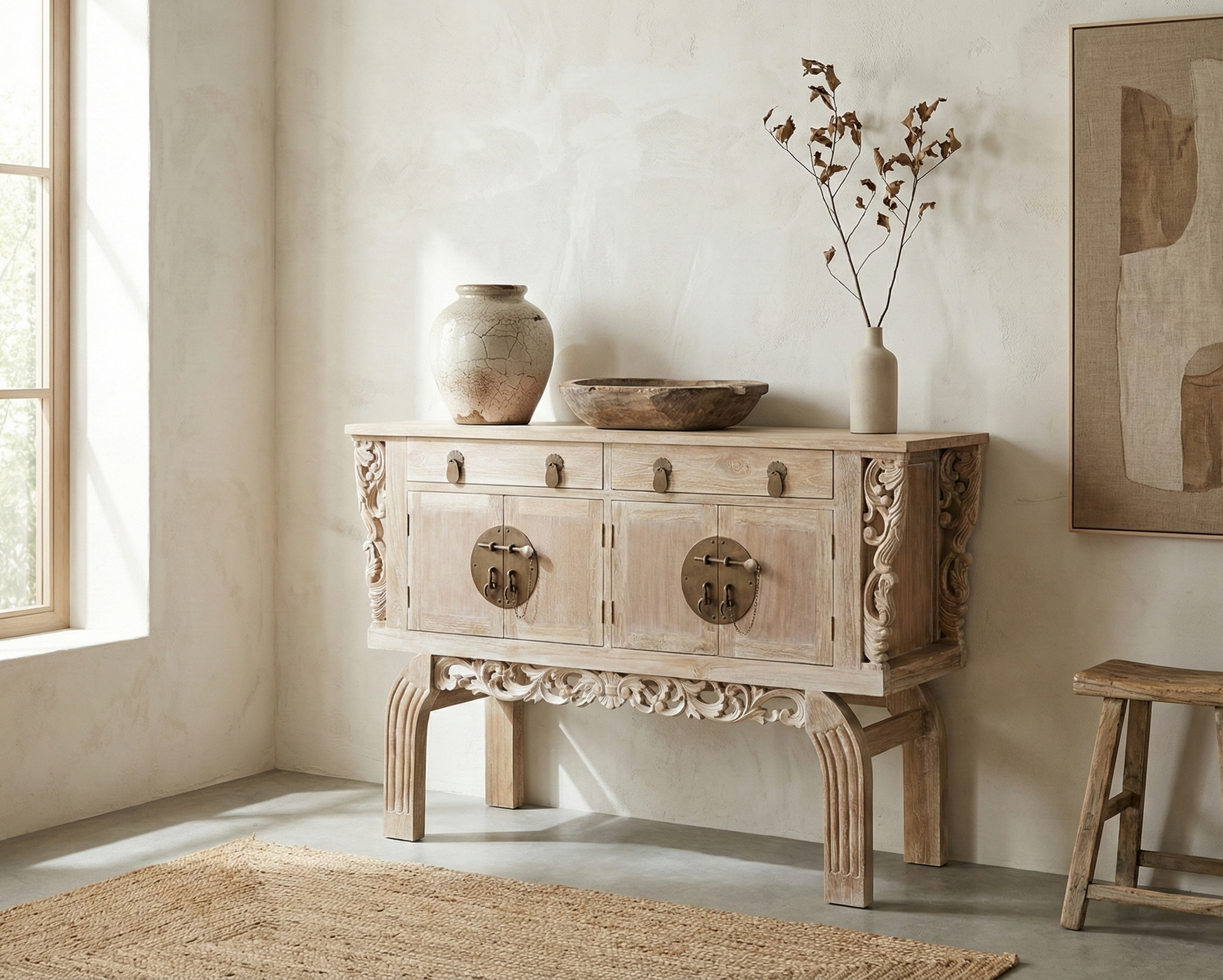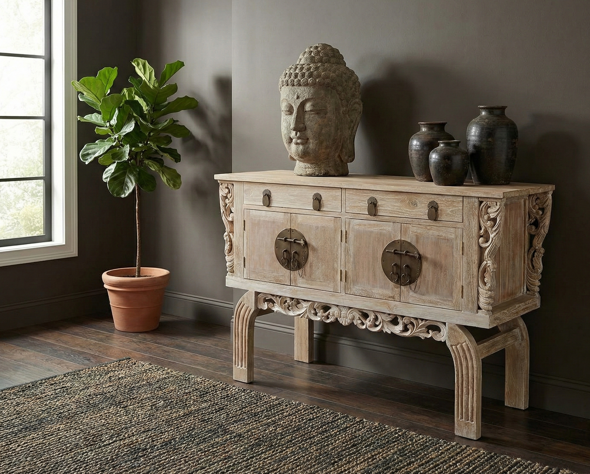 Consola colonial asiática de teca , diseñada para adaptarse a tus espacios. Esta pieza artesanal combina la elegancia del estilo colonial con la calidez natural de la madera de teca, reconocida por su durabilidad y belleza atemporal. Disponible a medida en dimensiones 33/48 cm, se integra perfectamente en recibidores, salones o dormitorios. Su construcción robusta garantiza años de uso, mientras que su acabado noble aporta sofisticación a cualquier ambiente. Una inversión en mueble de calidad que trasciende tendencias.