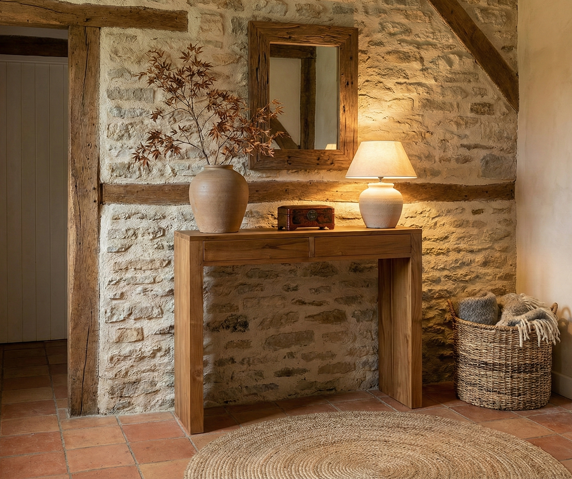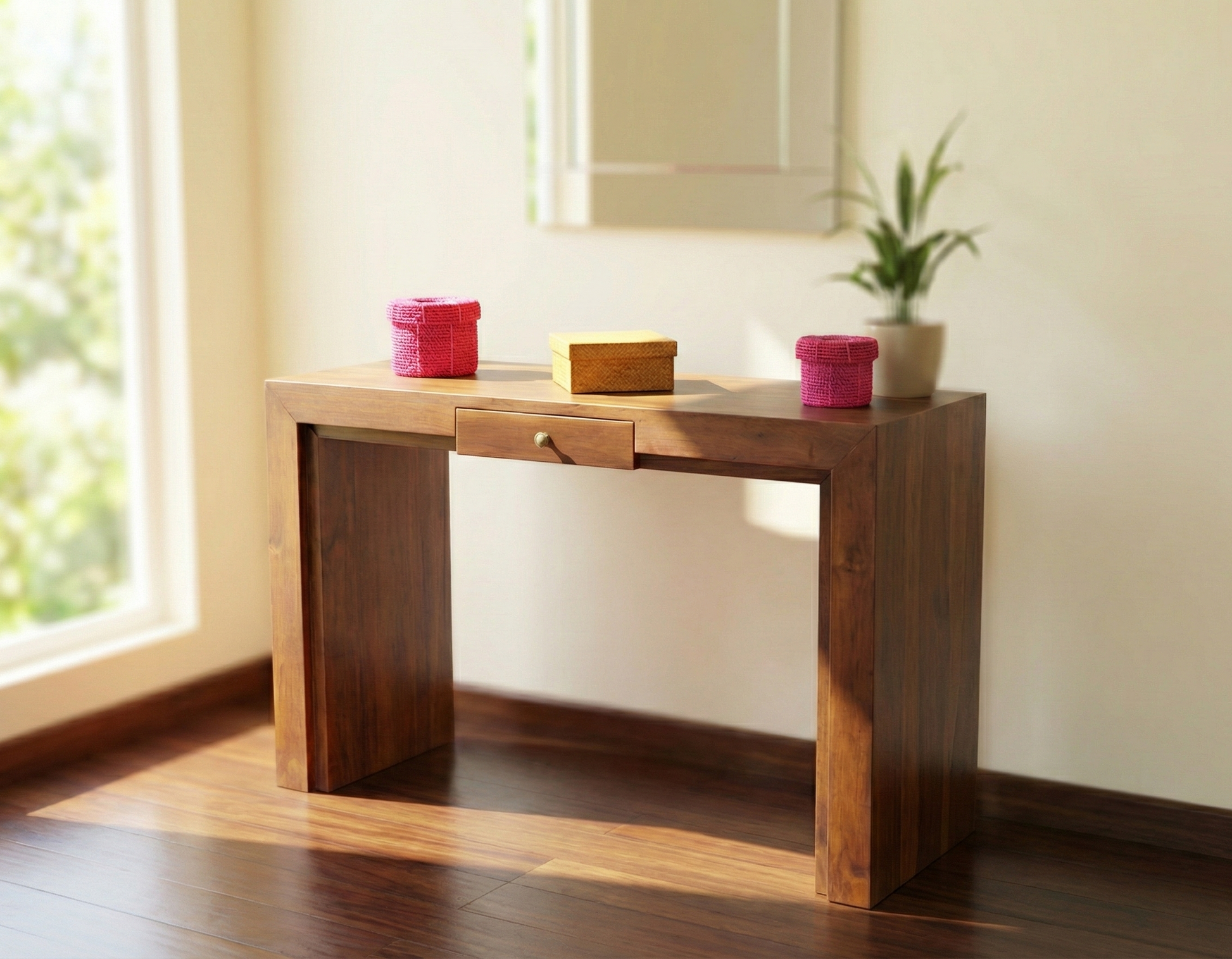 Descubre esta magnífica consola de inspiración colonial asiática, elaborada en auténtica madera de teca que garantiza durabilidad y elegancia atemporal. Su diseño original y exclusivo se adapta a cualquier espacio, transformando tu hogar con un toque de sofisticación exótica. Disponible en diversos colores para que encuentres la opción perfecta que complemente tu decoración. Una pieza versátil que combina funcionalidad y belleza en una sola propuesta.