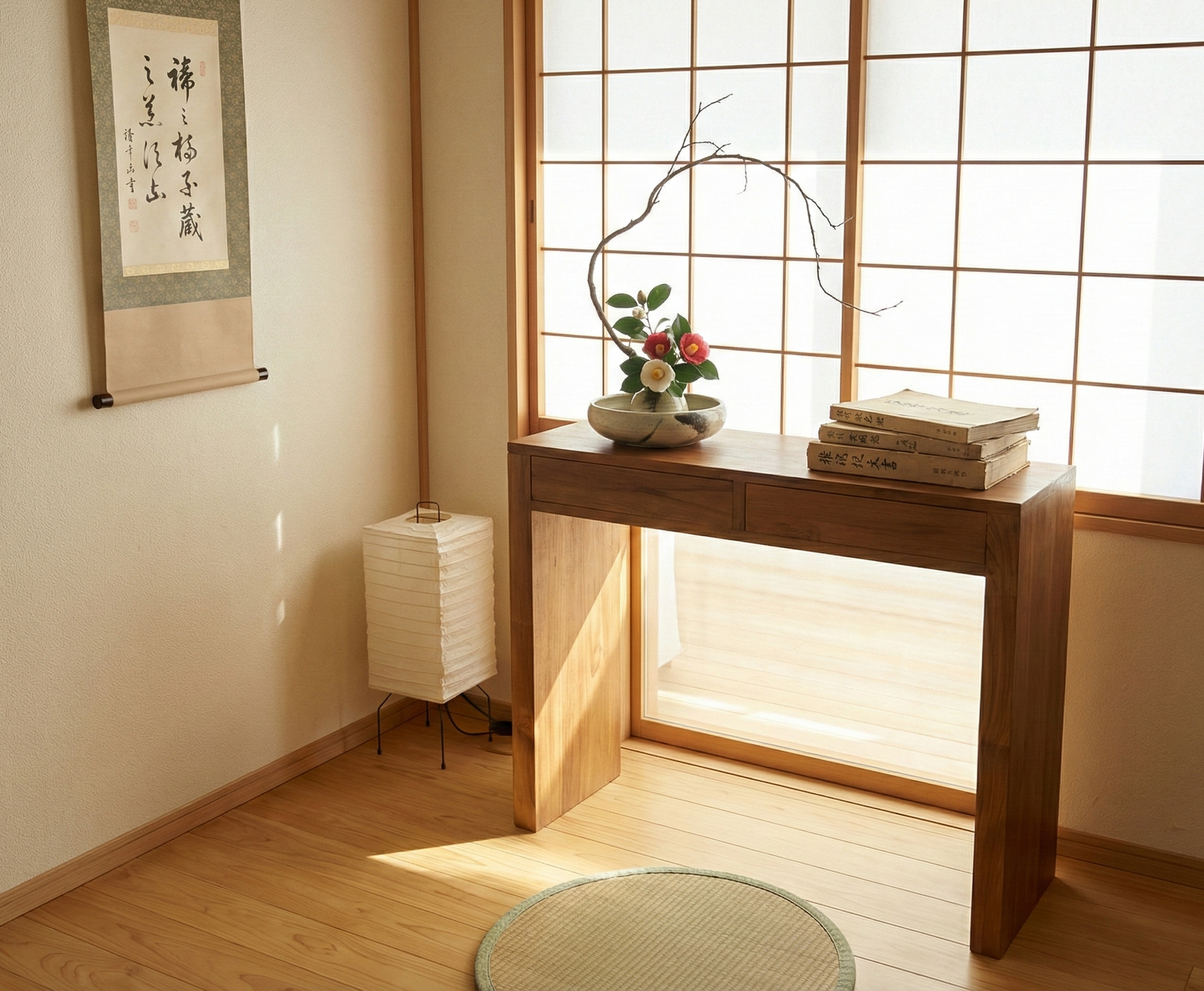 Consola colonial-asiática fabricada artesanalmente en TECA