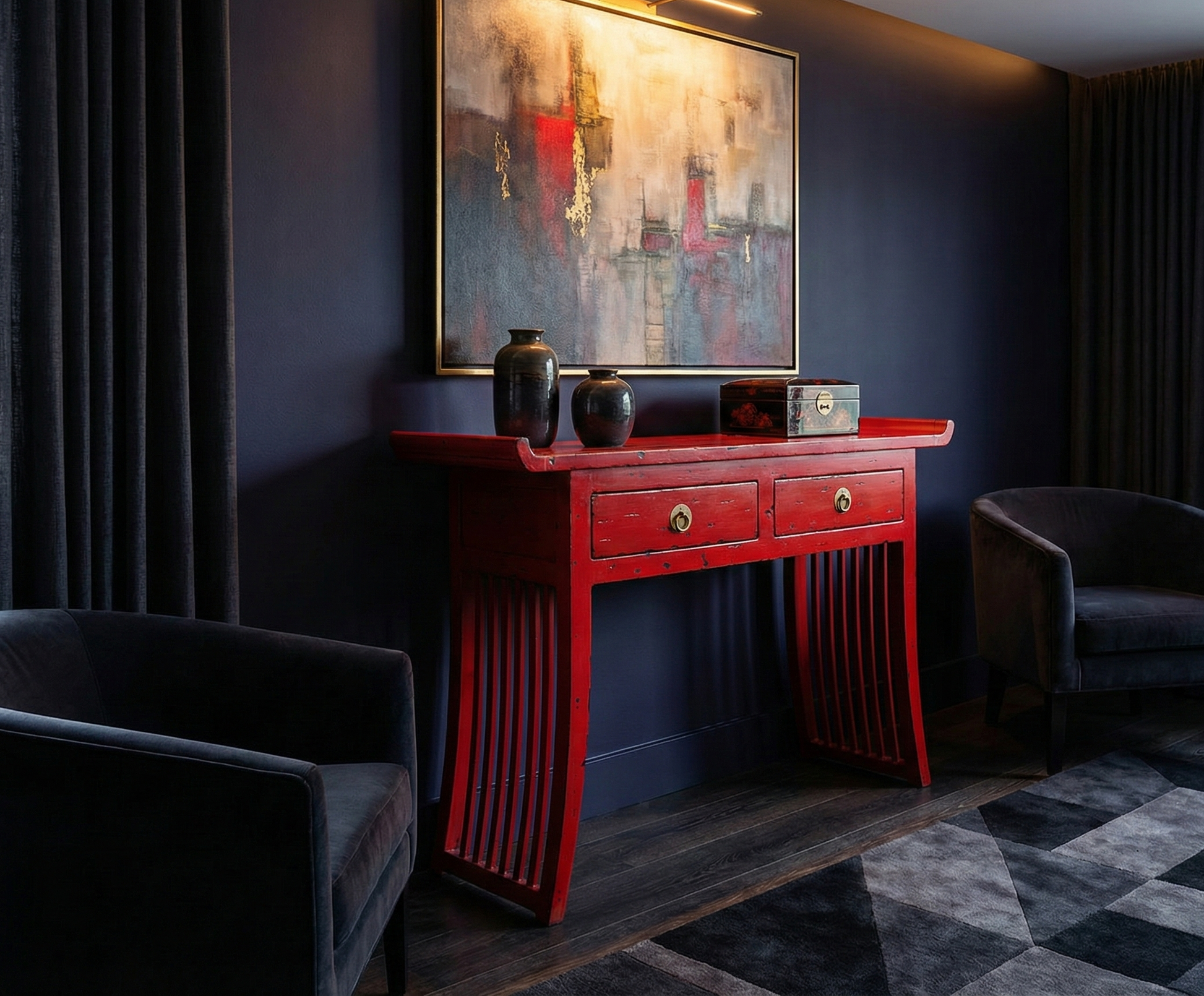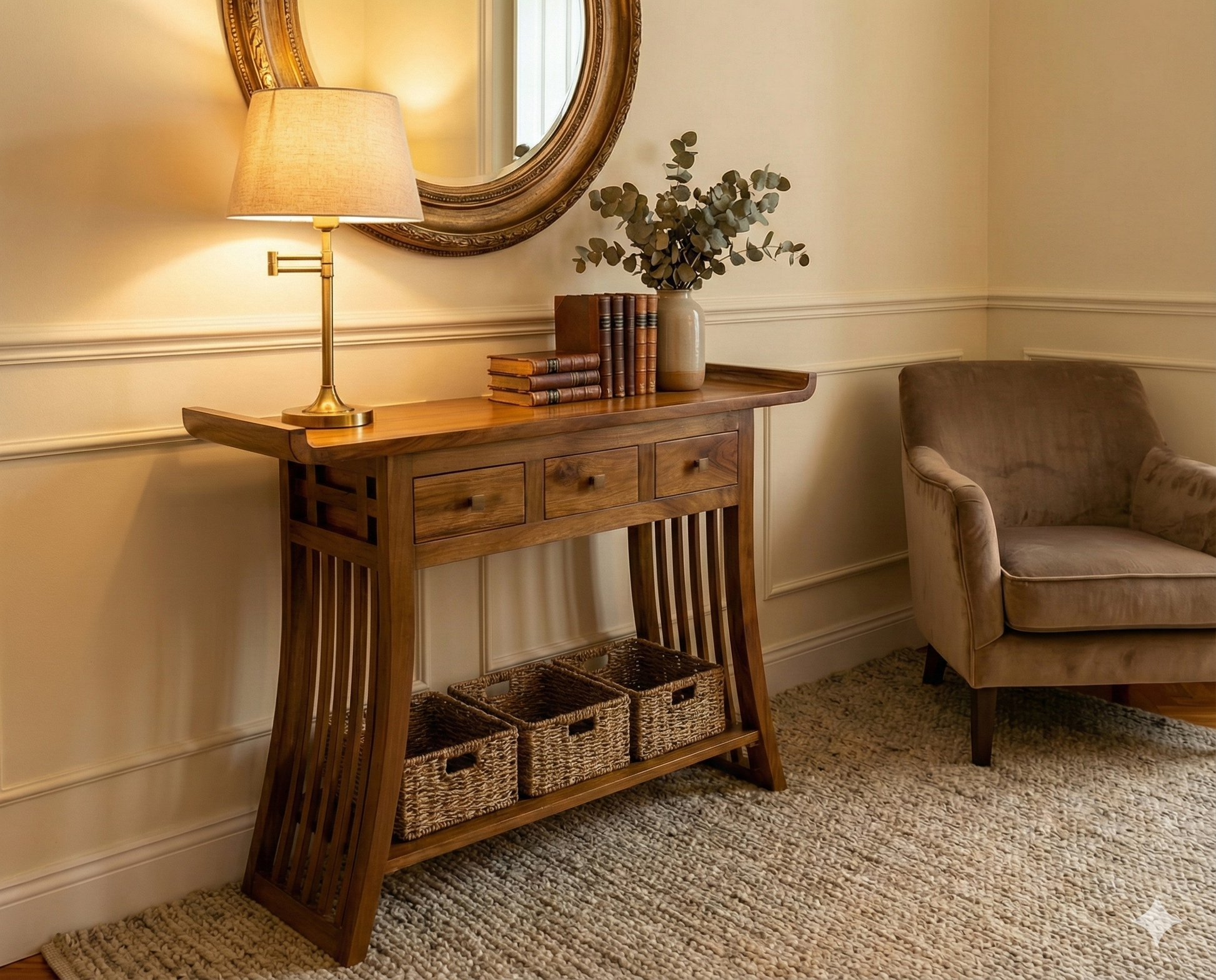 Consola artesanal a medida en madera de teca estilo oriental moderno AM202107151207