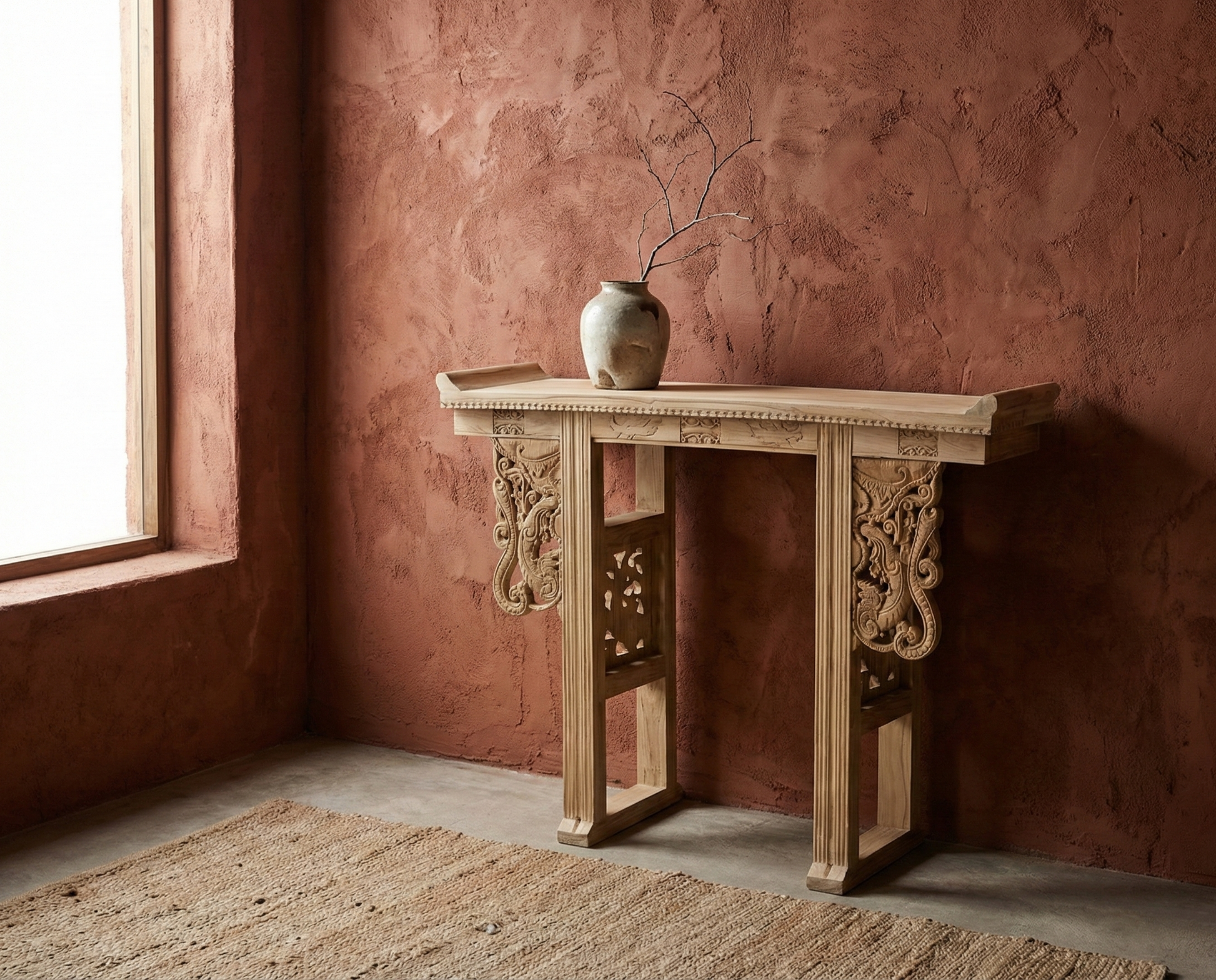 Consola Asiática colonial , una hermosa pieza de mobiliario que combina la belleza de la India con el estilo colonial. Sus tallas preciosas y detalles exquisitos la convierten en una pieza única y elegante que aportará un toque de distinción a cualquier espacio. ¡Una verdadera obra de arte para tu hogar!