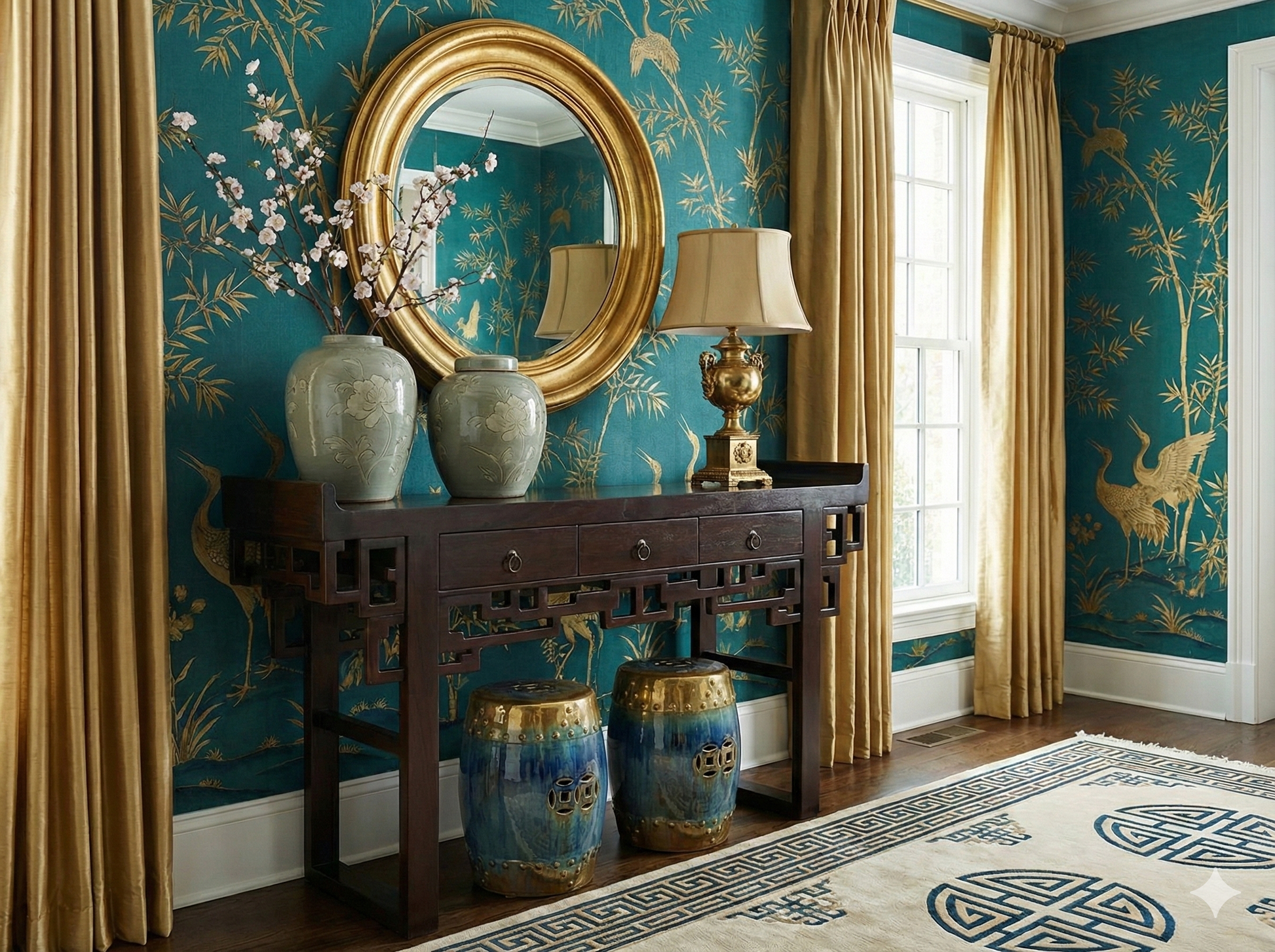 Consola colonial asiática de teca maciza que fusiona la elegancia del diseño chino con la funcionalidad contemporánea. Fabricada artesanalmente con madera de teca de primera calidad, destaca por sus líneas asiáticas tradicionales y detalles ornamentales que evocan la sofisticación oriental. Personalizable a medida para adaptarse perfectamente a tu espacio. Ideal para recibidores, salones o dormitorios, esta pieza versátil combina autenticidad y versatilidad. Un mueble de inversión que añade carácter y calidez a cualquier ambiente con su presencia noble y atemporal.