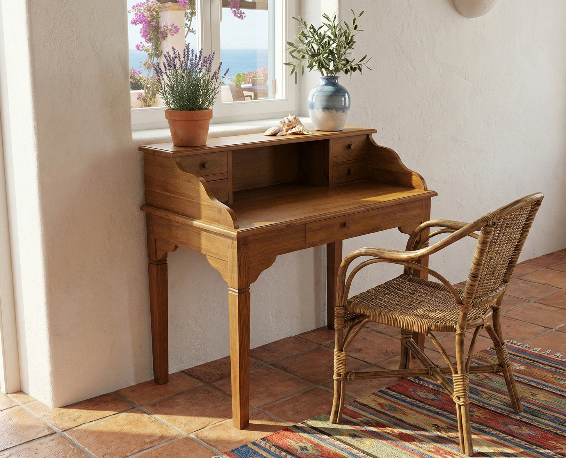 Escritorio colonial asiático a medida en teca . Color a elegir