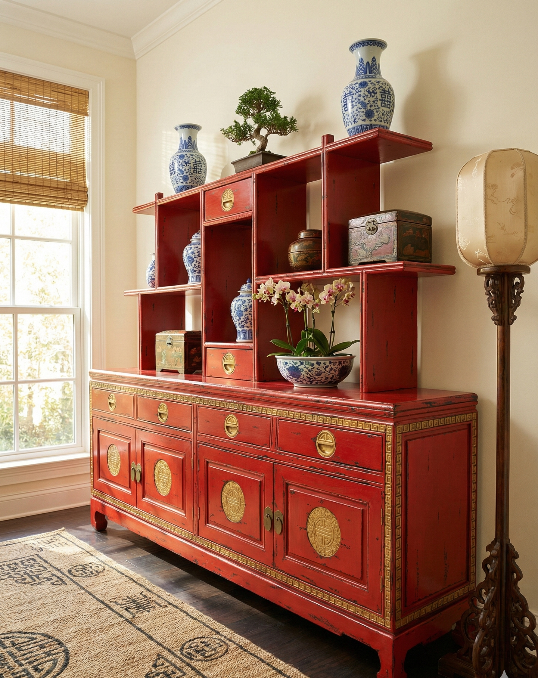 Librería colonial-asiático fabricada artesanalmente en TECA