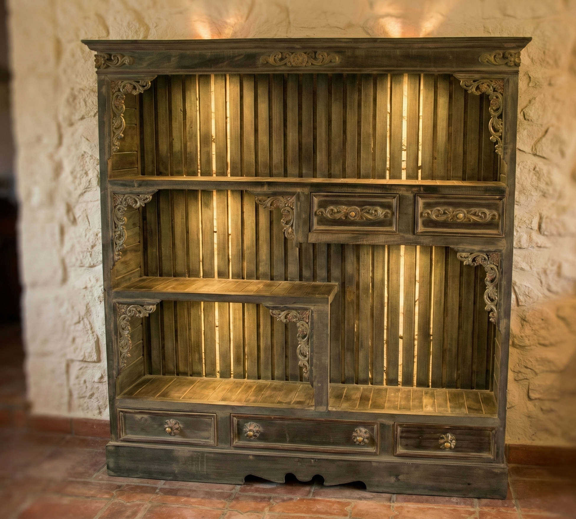 Librería colonial-asiático fabricada artesanalmente en TECA