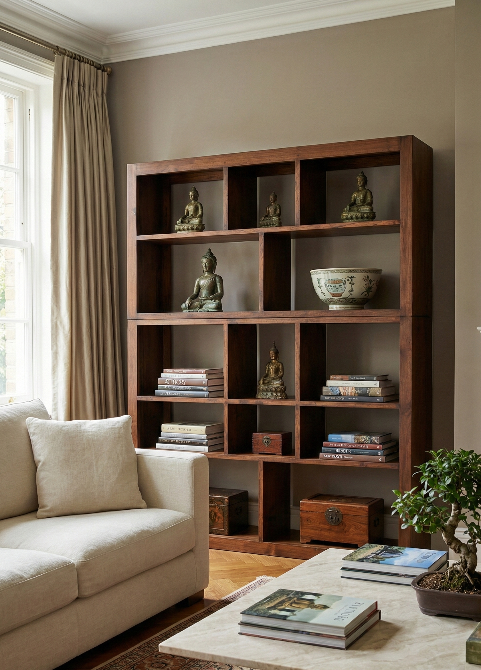 Librería colonial asiática a medida en teca a tu gusto