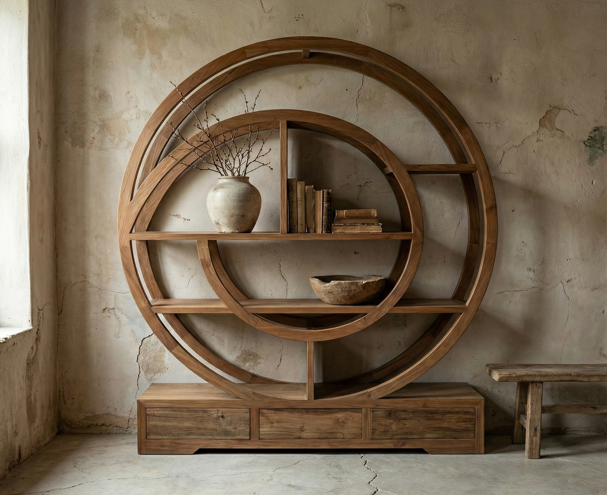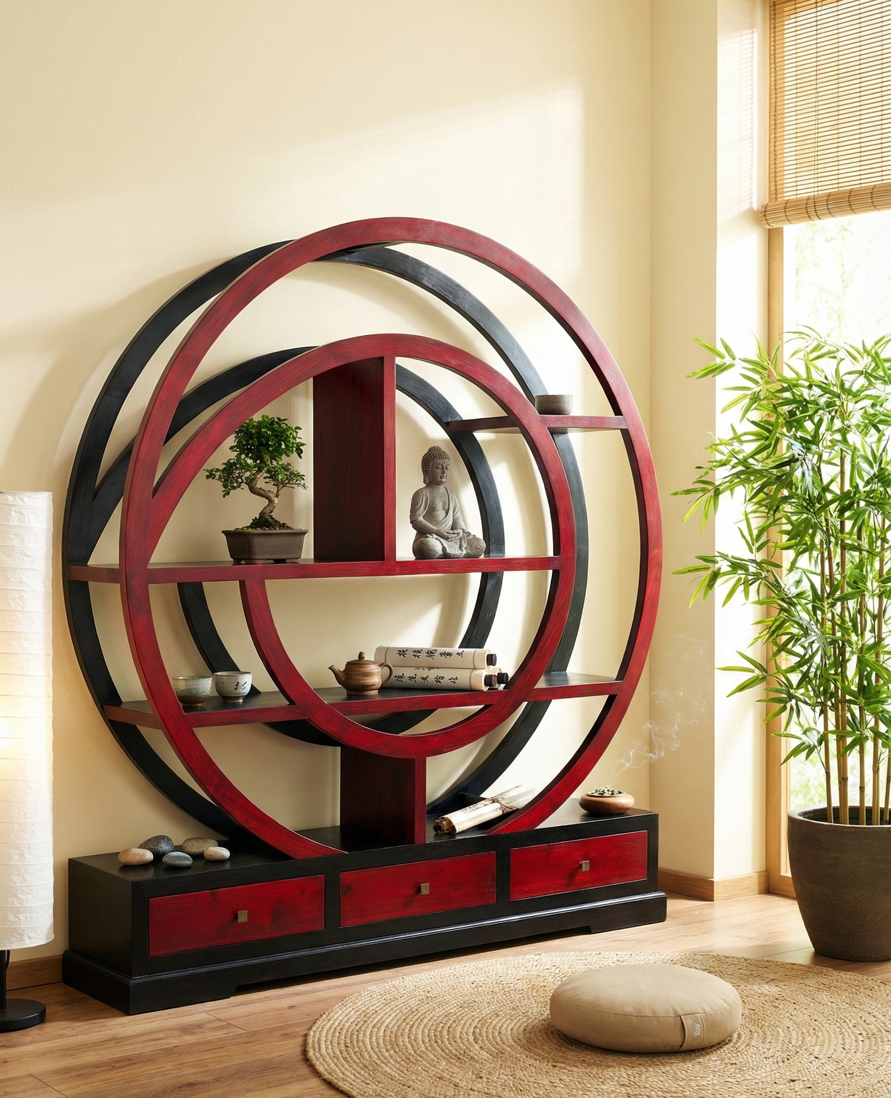 Libreria circular colonial asiática a medida en diferentes colores