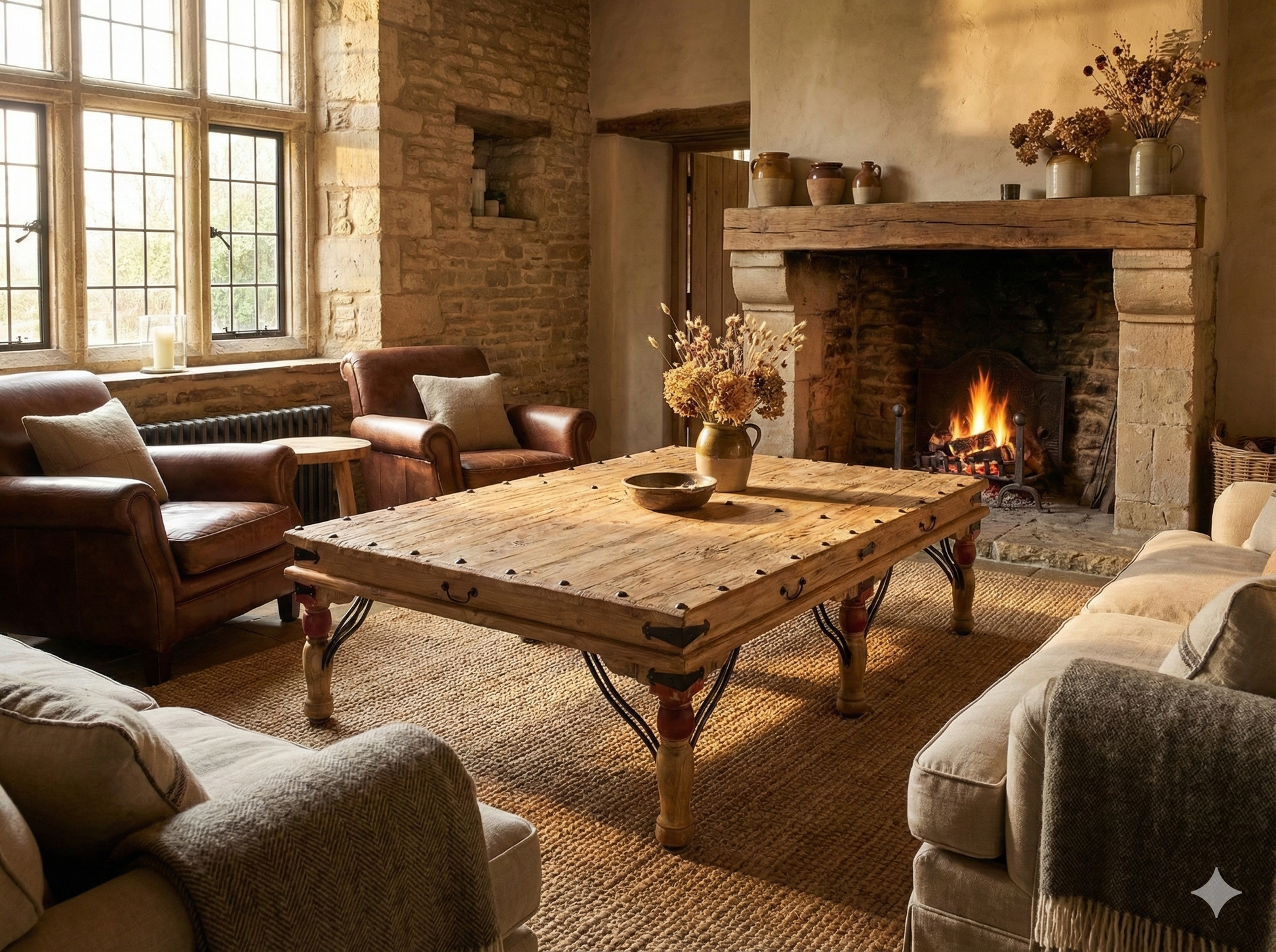 Mesa de centro en teca reciclada a medida con remaches metálicos. Mesa de centro de estio colonial-asiático fabricada artesanalmente en madera de teca reciclada y con remaches metálicos. Disponibilidad en otras medidas y colores.