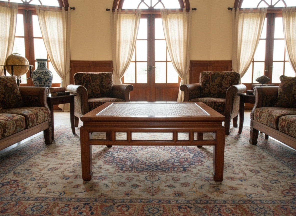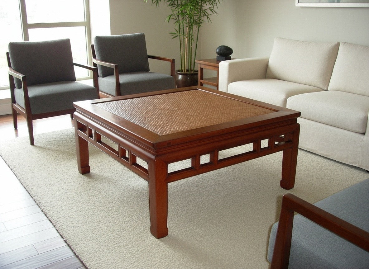 Mesa de centro colonial-asiático fabricada artesanalmente en TECA