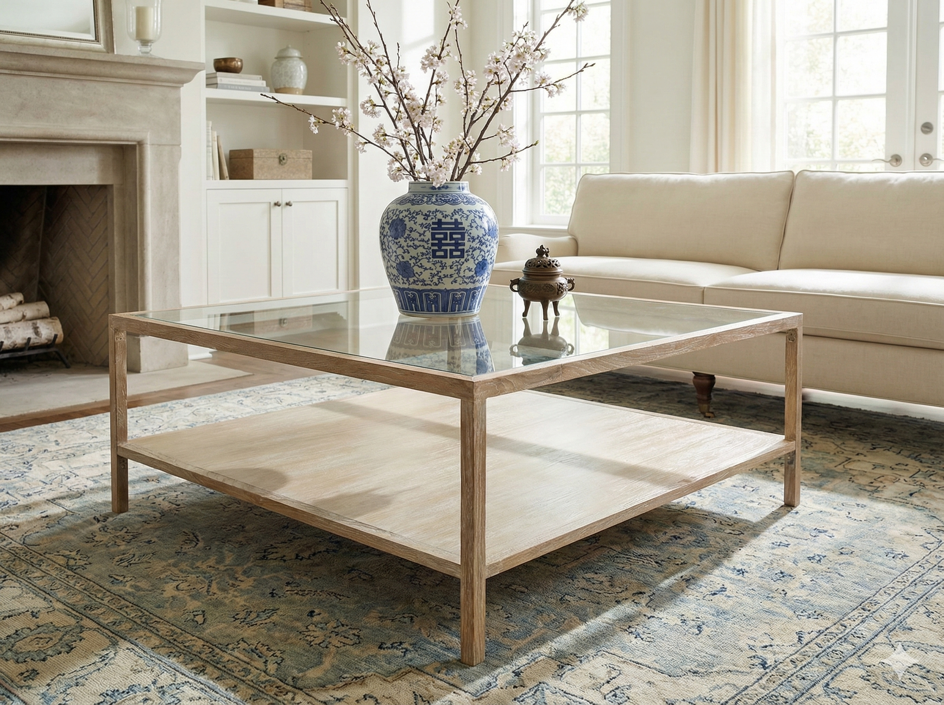 Mesa de centro colonial-asiático fabricada artesanalmente en TECA