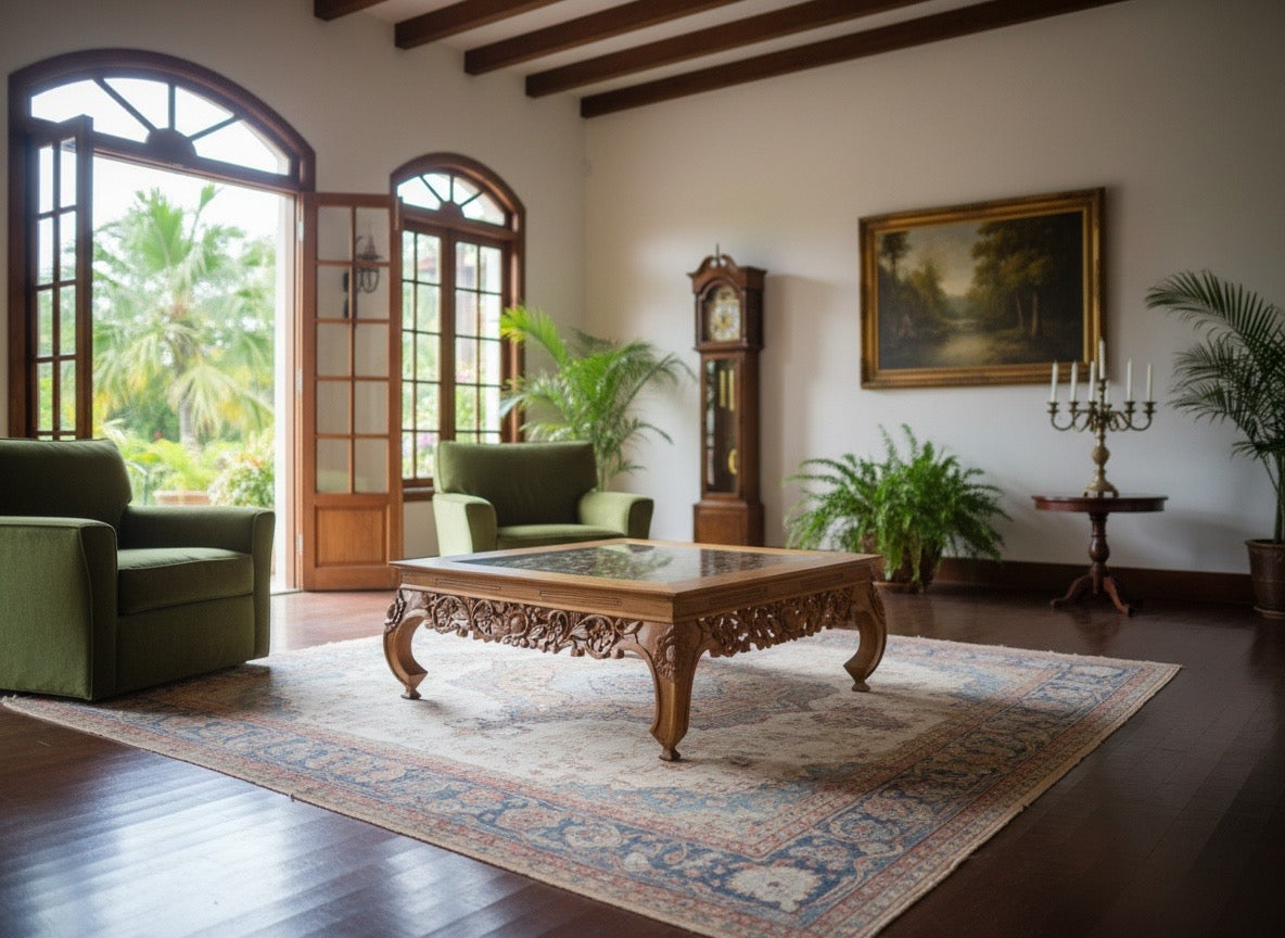 Mesa de centro colonial-asiático fabricada artesanalmente en TECA