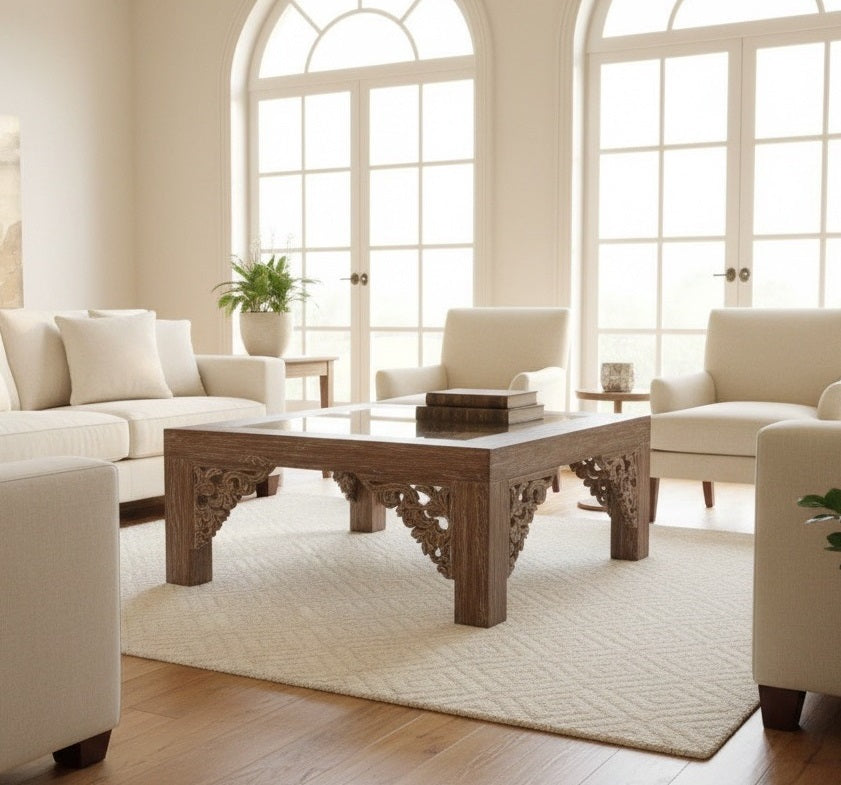 Mesa de centro colonial-asiático fabricada artesanalmente en TECA