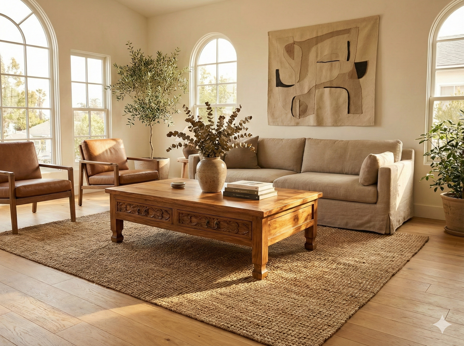 Posee una mesa de centro colonial-asiática india tallada en teca, donde la artesanía ancestral se encuentra con la funcionalidad moderna. Sus grabados preciosistas revelan la maestría de artesanos indios que dominan técnicas milenarias, transformando cada superficie en una galería de arte miniaturista. Elige entre versiones con o sin cajones según tus necesidades: los compartimentos discretos ofrecen almacenamiento práctico sin comprometer la elegancia visual. La teca noble envejece , ganando profundidad y carácter que intensifican su belleza con el tiempo. Fabricada completamente a medida, personaliza cada dimensión, detalle de tallado y configuración de almacenamiento. Una inversión en autenticidad que trasciende lo funcional, celebrando la conexión genuina con la tradición artesanal india y transformando tu hogar en un espacio de distinción incomparable.