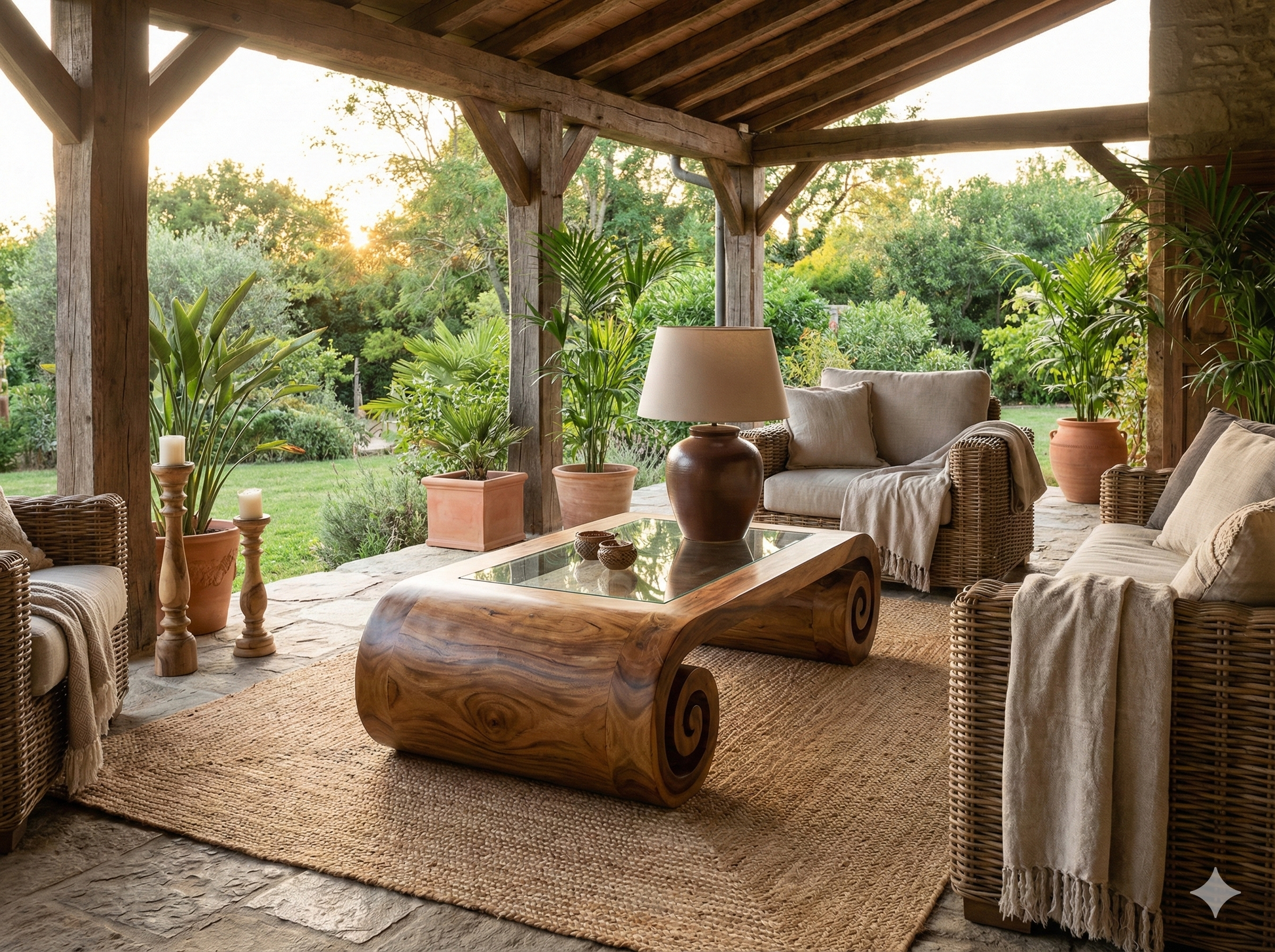 Descubre una mesa de centro colonial-asiática donde las volutas talladas te invitan a un viaje sensorial hacia los misterios de Oriente. Sus curvas elegantes, esculpidas con precisión artesanal en teca noble, evocan la sofisticación de antiguos templos y palacios asiáticos. Cada línea fluida crea movimiento visual que transforma tu sala en un espacio de contemplación y asombro. La teca maciza, con su calidez natural y durabilidad excepcional, envejece gracefully, ganando carácter que profundiza la belleza de cada detalle grabado. Fabricada completamente a medida, personaliza cada dimensión y acabado para que refleje tu visión personal. Una pieza que celebra la maestría artesanal ancestral, convirtiéndose en el corazón de tu hogar, transformando tu espacio en un santuario de elegancia oriental donde la belleza perdura sin límite de tiempo.