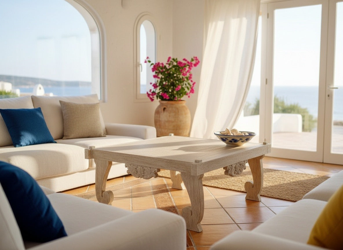 Mesa de centro colonial-asiático fabricada artesanalmente en TECA