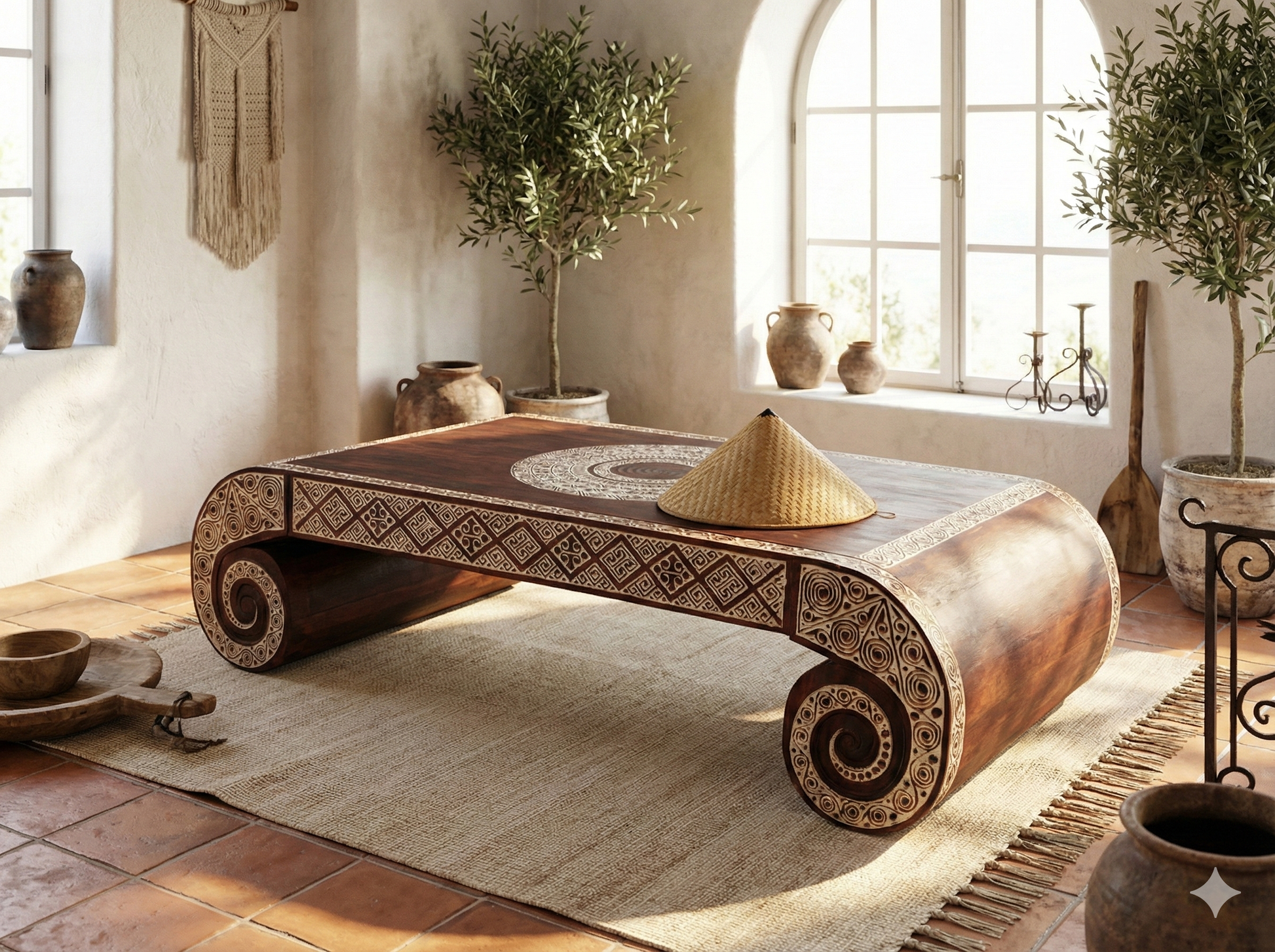 Incorpora la riqueza cultural de Timor a tu hogar con esta mesa de centro asiática fabricada en madera roja noble, cuyas tallas y motivos tradicionales revelan la maestría artesanal de la región. Sus grabados característicos, inspirados en la herencia cultural timorense, crean una presencia visual cautivadora que trasciende lo funcional. La madera roja de Timor, con sus tonalidades cálidas y veteado distintivo, proporciona la base ideal para un mueble que mejora con el tiempo, ganando patina que intensifica su belleza. Cada detalle tallado cuenta historias de tradición milenaria, transformando tu sala en un espacio de autenticidad y distinción. Fabricada completamente a medida, personaliza cada dimensión y tonalidad para lograr tu visión personal. Una pieza que celebra la singularidad cultural.