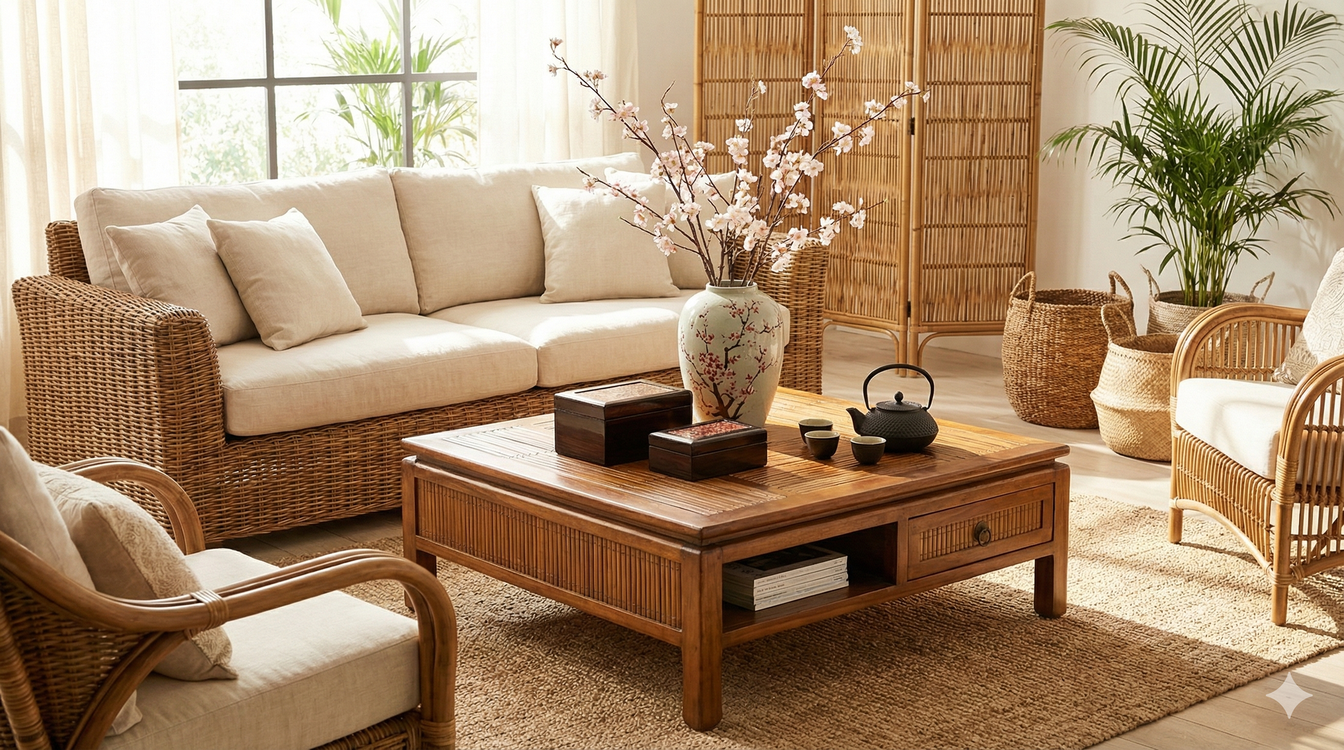 En Asia Muebles combinamos nuestros muebles con otras materias como cristal, metal, bambú, fibras naturales y fibras sintéticas.