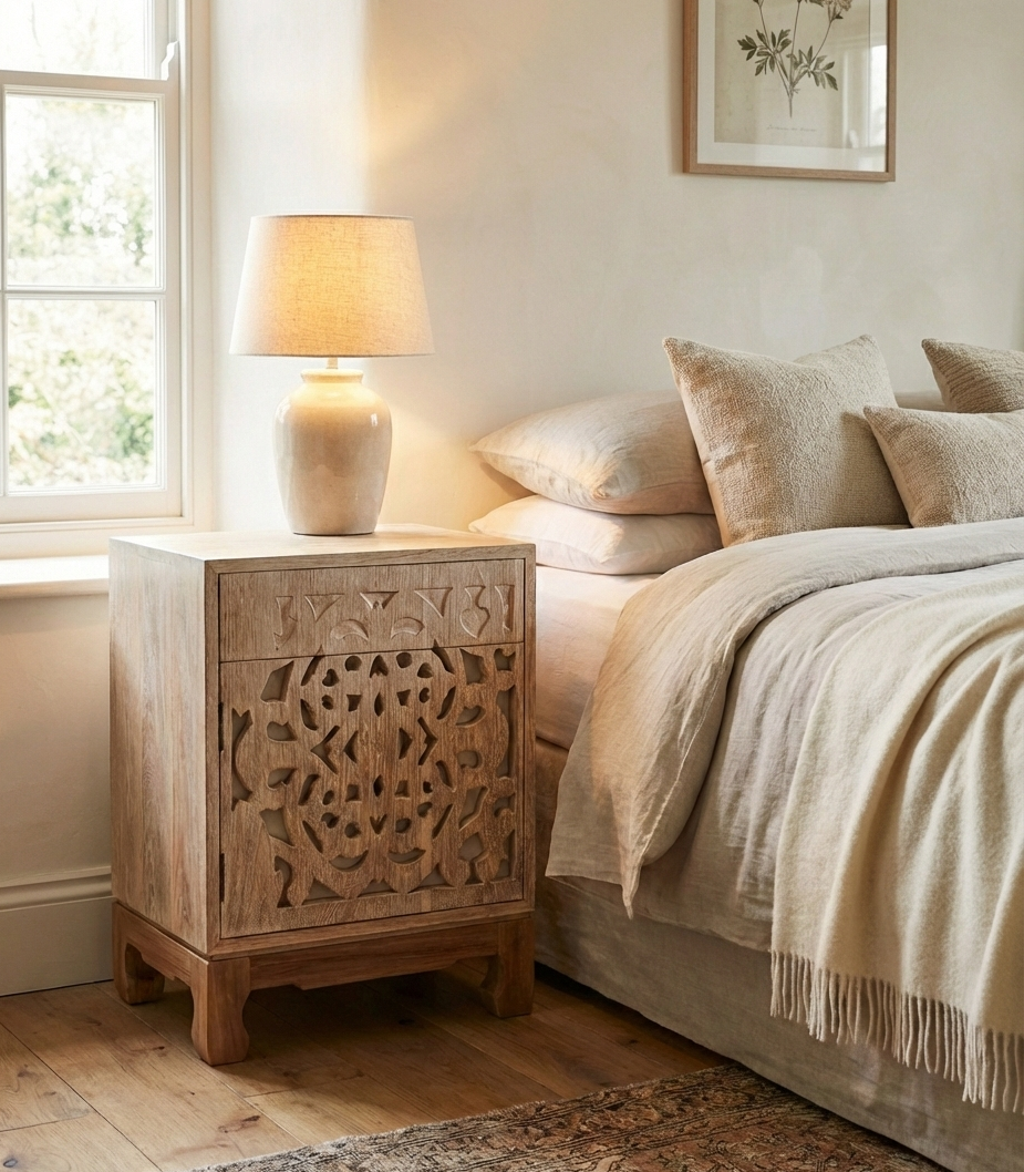 Esta mesilla de noche a medida combina la elegancia original del diseño asiático con una funcionalidad pensada para optimizar tu espacio. Tallada cuidadosamente, ofrece un acabado único que aporta un toque sofisticado y auténtico a cualquier dormitorio. Su diseño personalizado garantiza que se adapte perfectamente a tus necesidades y estilo, fusionando tradición y practicidad en una pieza exclusiva.