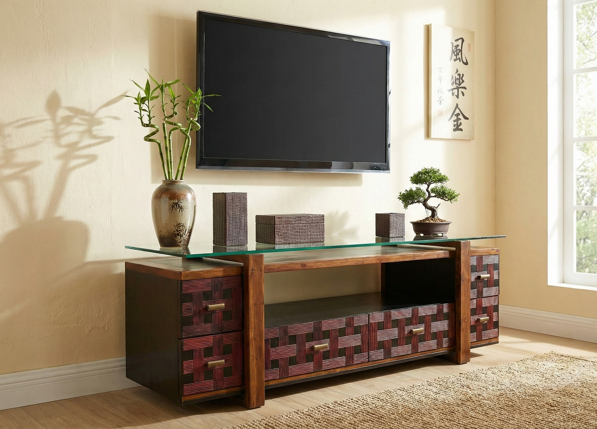 Mueble de Tv asiatico colonial. La estetica Japonesa en un mueble original.