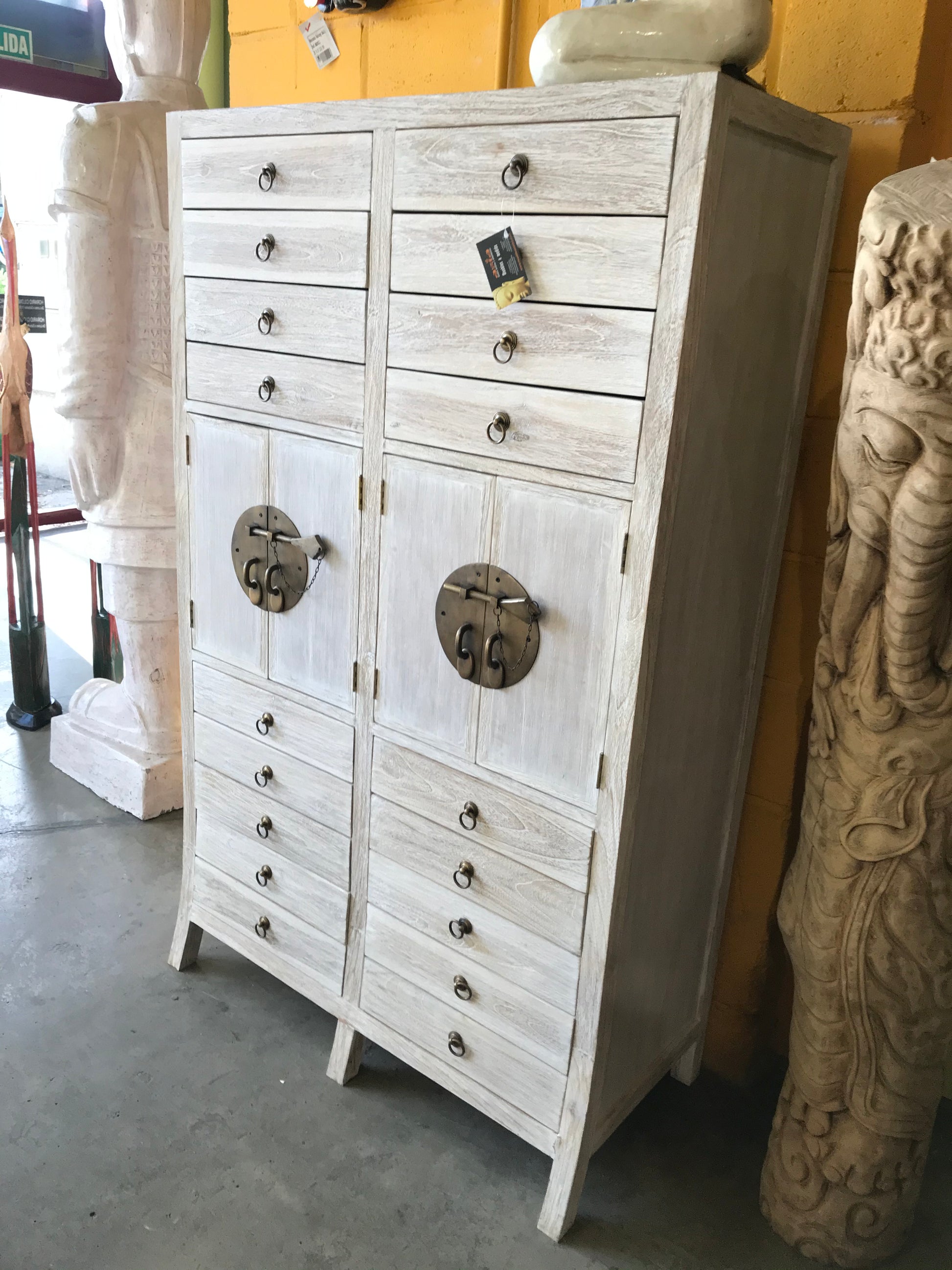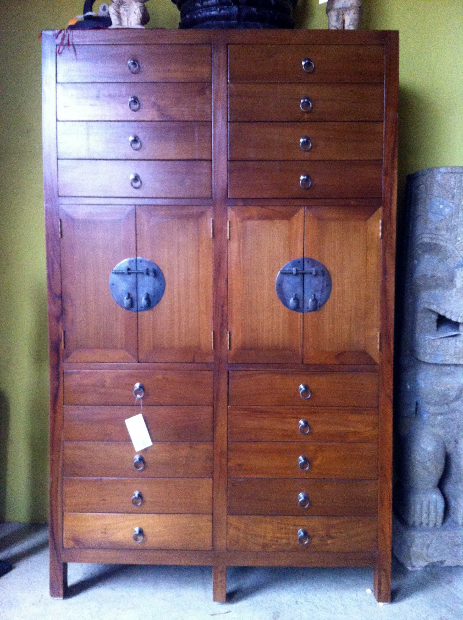 Sinfonier colonial de teca maciza, diseñado a medida para adaptarse perfectamente a tu espacio. Configura libremente el número de puertas y cajones según tus necesidades de almacenamiento. La teca, madera noble de gran durabilidad, garantiza una pieza que trasciende generaciones. Su elegante línea colonial combina funcionalidad con estética atemporal, convirtiéndola en protagonista de cualquier dormitorio o salón. Acabado impecable y construcción artesanal que refleja la calidad de los muebles de Asia Muebles.