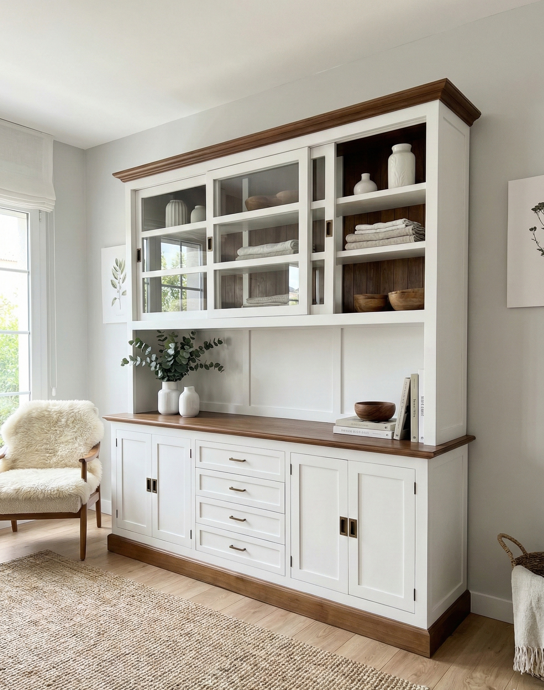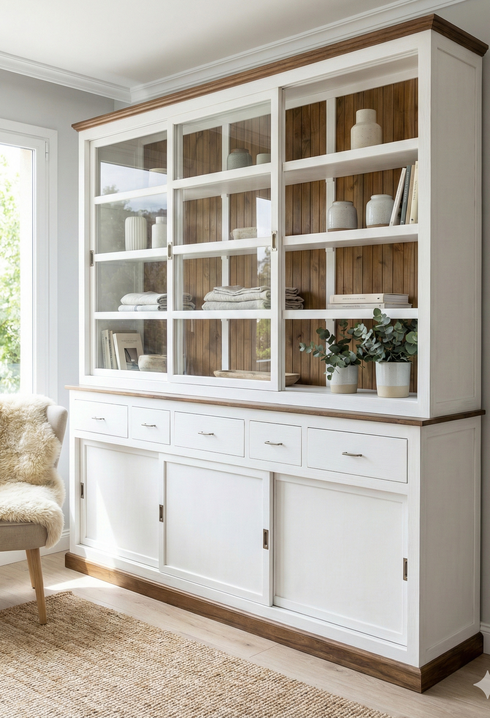 Vitrina de estilo colonial de lineas sencillas, moderna y elegante fabricada artesanalmente en madera de teca.