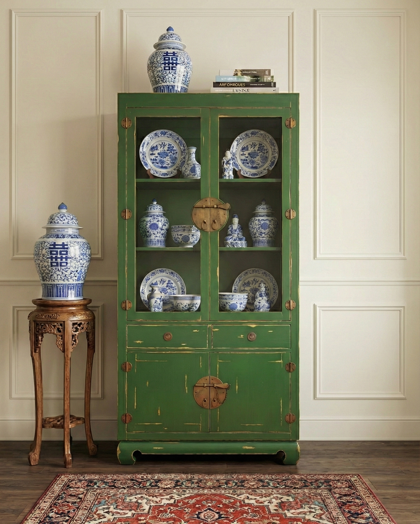 Vitrina a medida estilo asiático colonial en teca AM2109281422