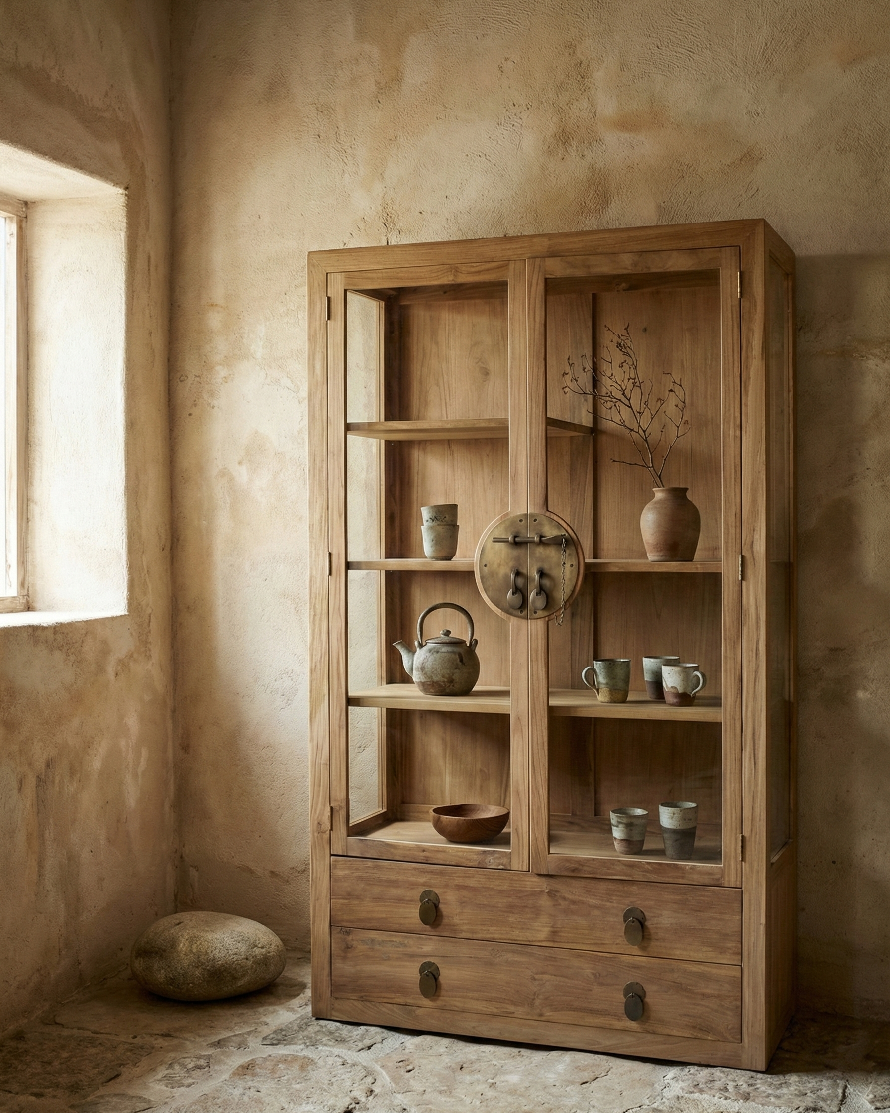 Vitrina colonial asiática a medida color y distribución de puertas y cajones a tu gusto