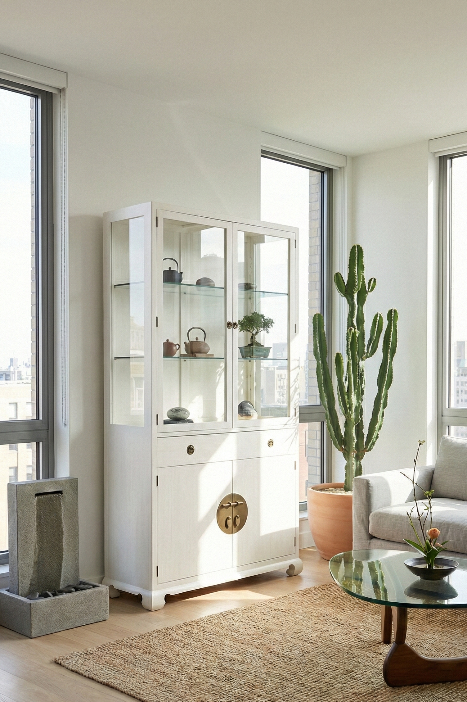 De inspiracion China con pata Opium . Los costados de cristal dan ligereza a la pieza